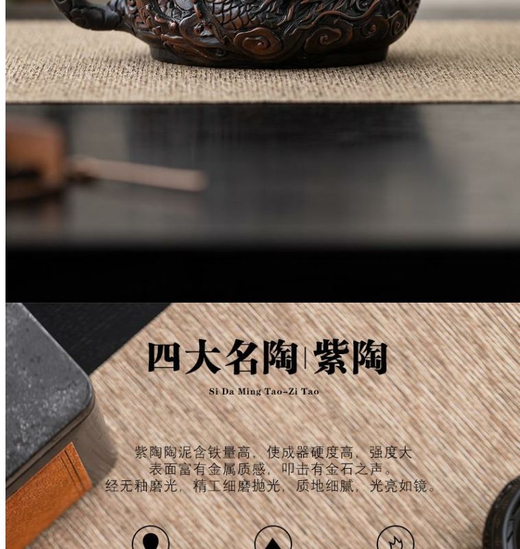 Ấm trà thủ công ấm trà đất sét tím nguyên chất đầy chạm khắc rồng tốt lành dụng cụ pha trà Kung Fu dung tích lớn ấm trà cao cấp chạm khắc ba chiều