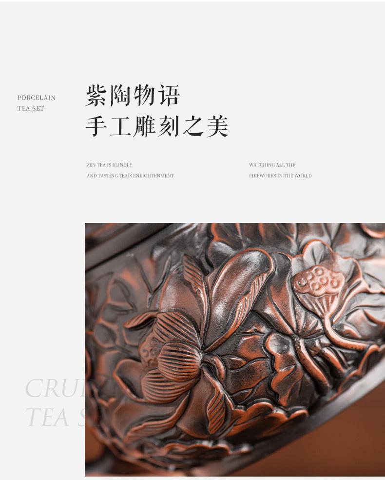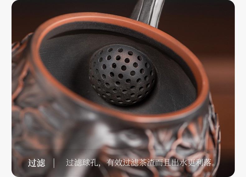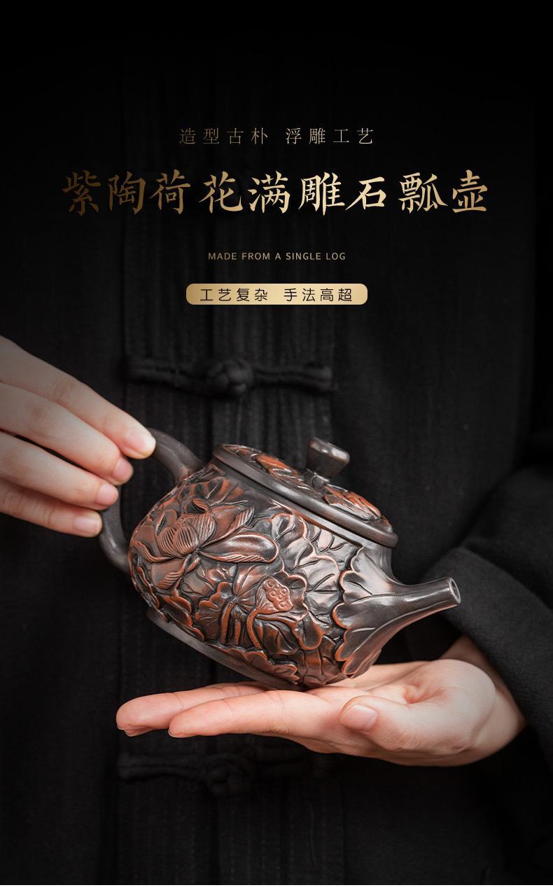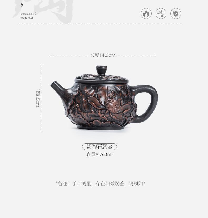 - Ấm trà thủ công nổi tiếng Vân Nam gốm tím ấm đơn chạm nổi đầy đủ ấm pha trà chạm khắc ấm trà bộ ấm sức khỏe