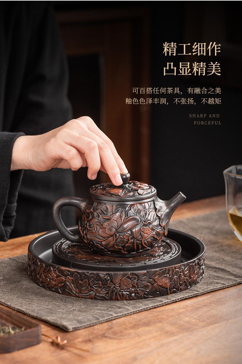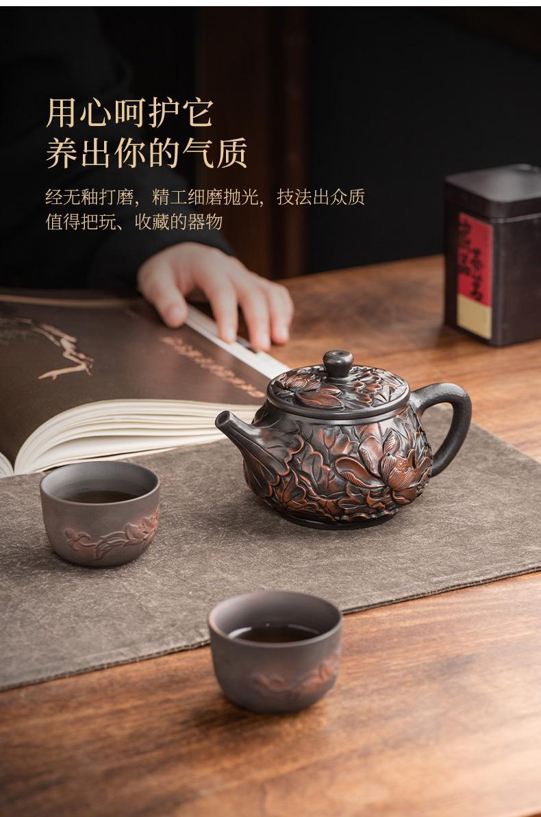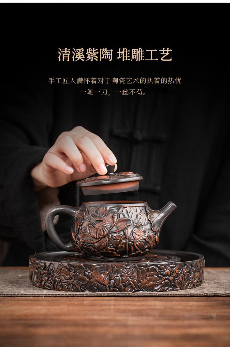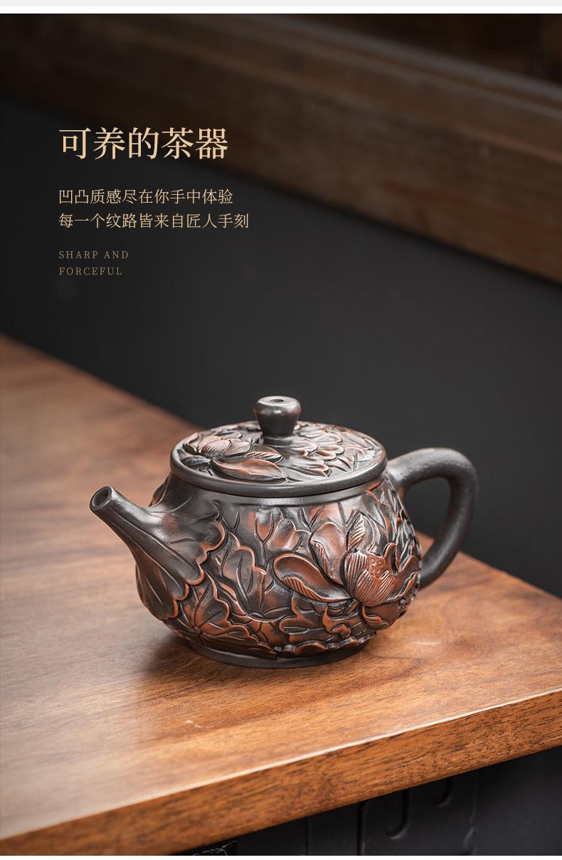 - Ấm trà thủ công nổi tiếng Vân Nam gốm tím ấm đơn chạm nổi đầy đủ ấm pha trà chạm khắc ấm trà bộ ấm sức khỏe