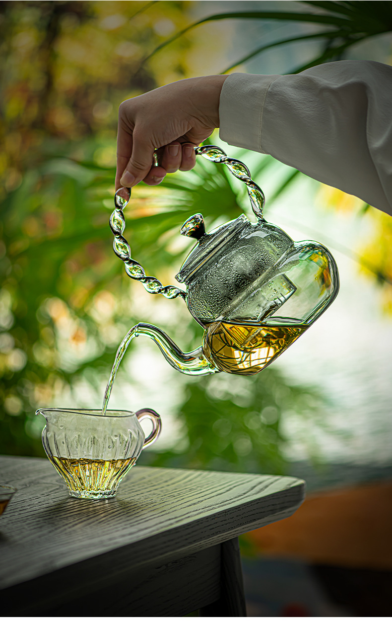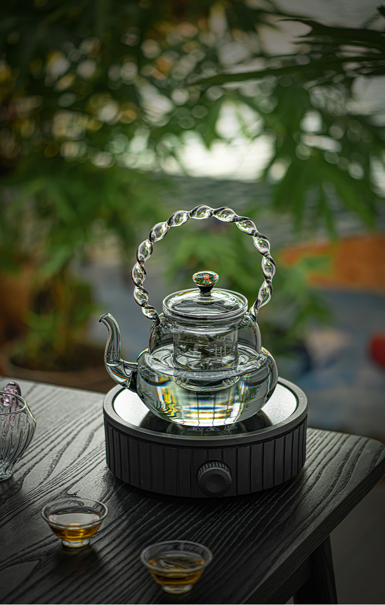 Ấm trà thủy tinh borosilicat cao ấm trà hấp ấm đun nước nhiệt độ cao ấm pha trà dung tích lớn ấm trà sức khỏe ấm trà