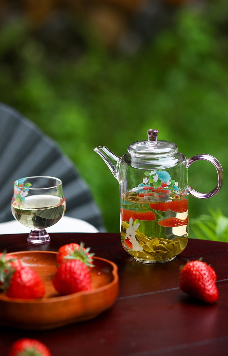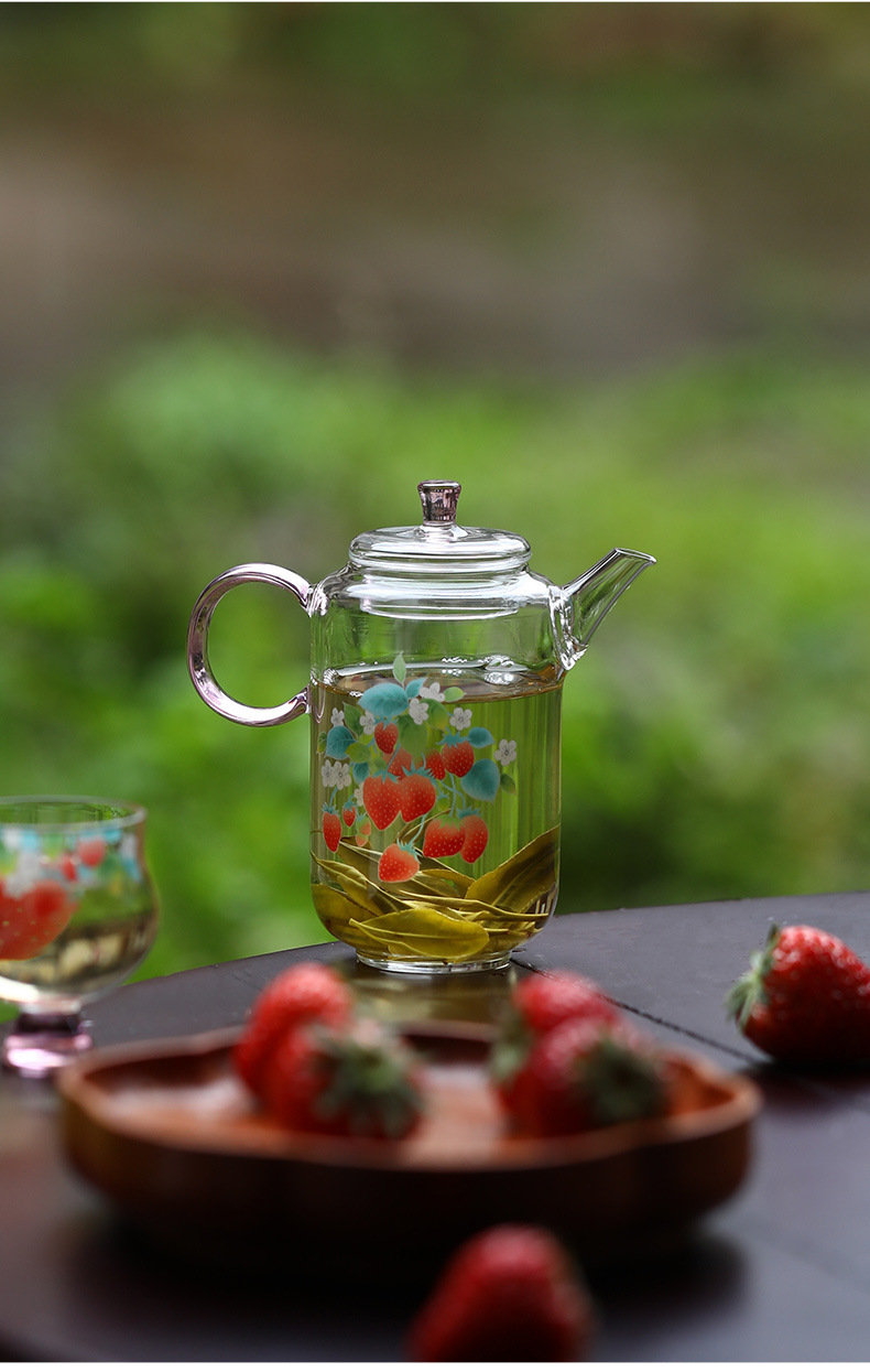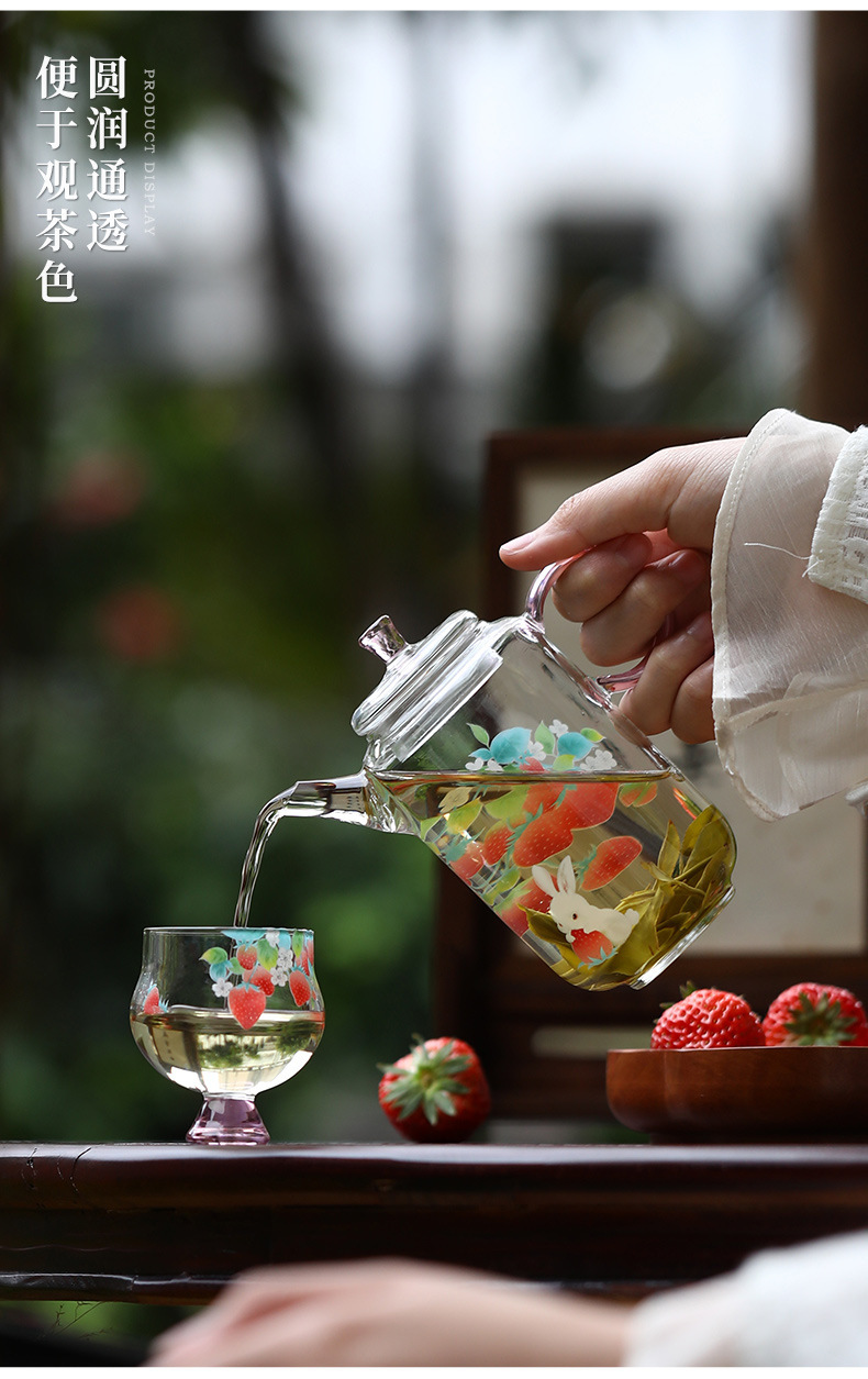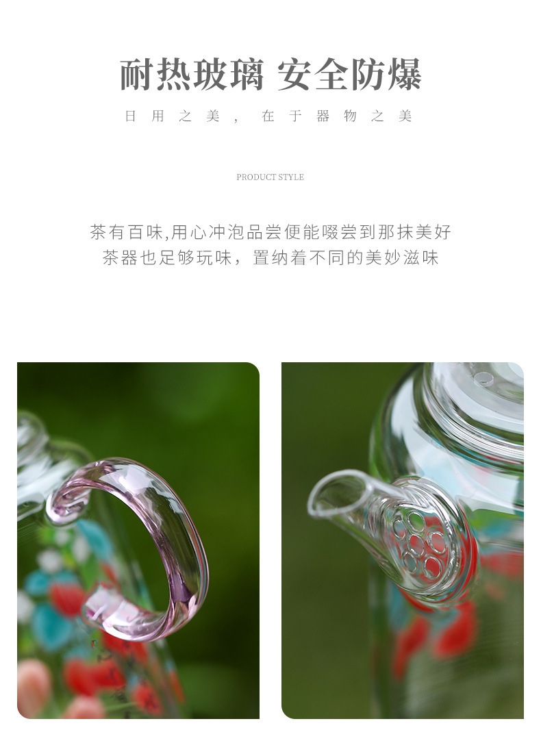 Ấm trà thủy tinh pha lê ấm pha trà dày chịu nhiệt độ cao ấm đơn gia dụng có thể lọc bên tay cầm Bộ trà Kung Fu cỡ lớn