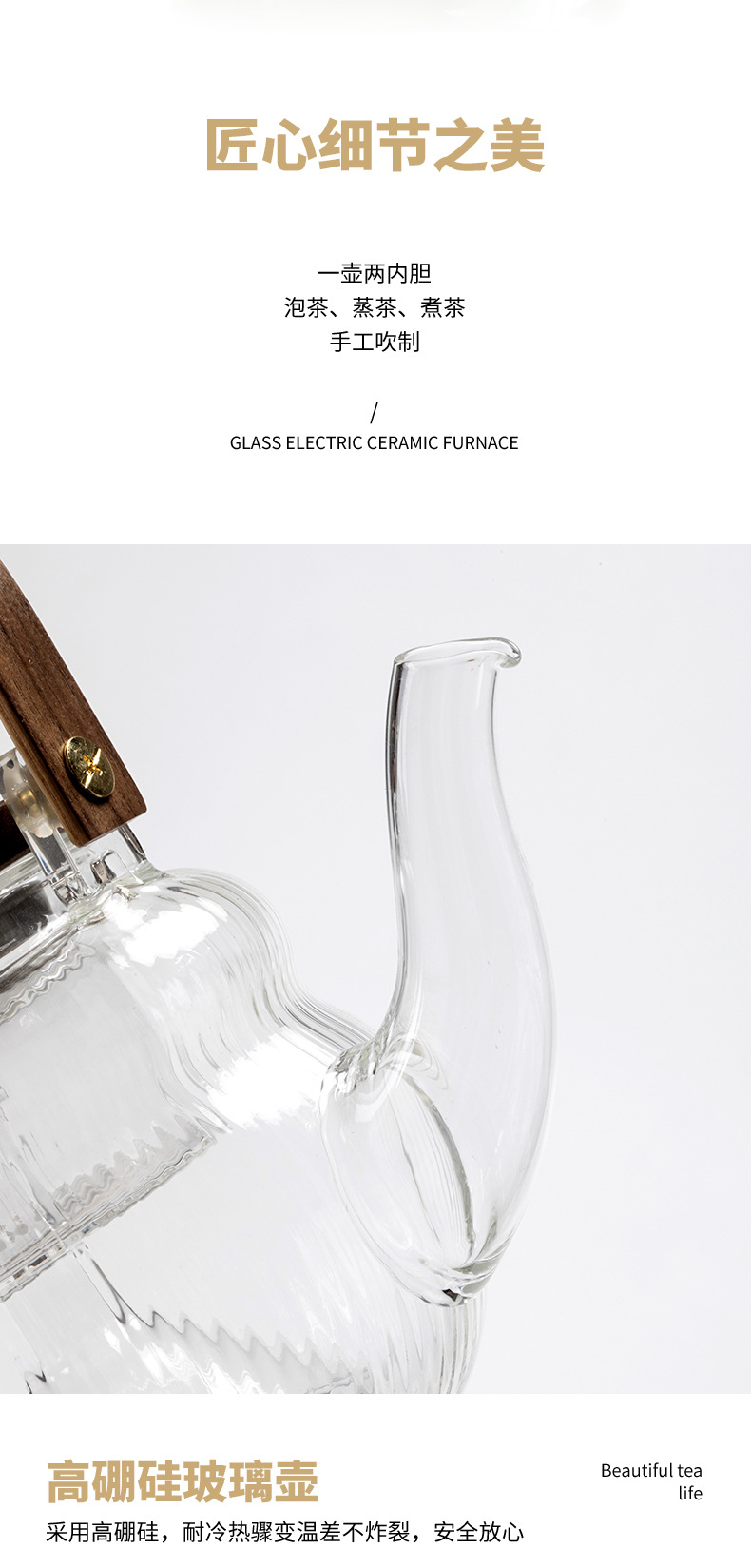Ấm trà thủy tinh tích hợp nấu, bếp gốm điện dung tích lớn, dụng cụ đun trà tự động, đun nước, pha trà chống bỏng chuyên dụng
