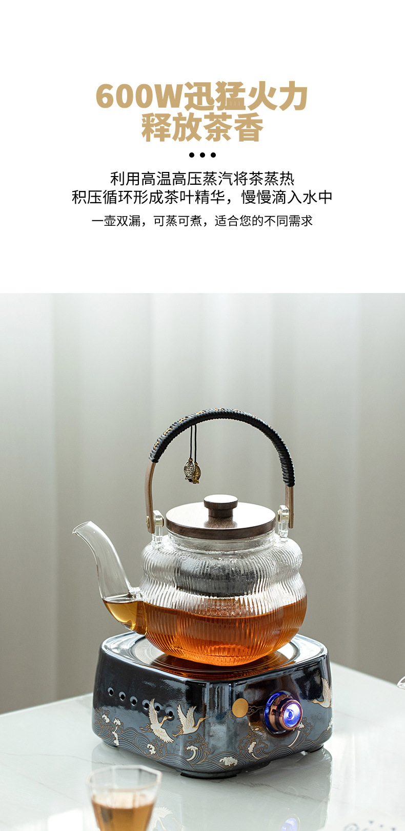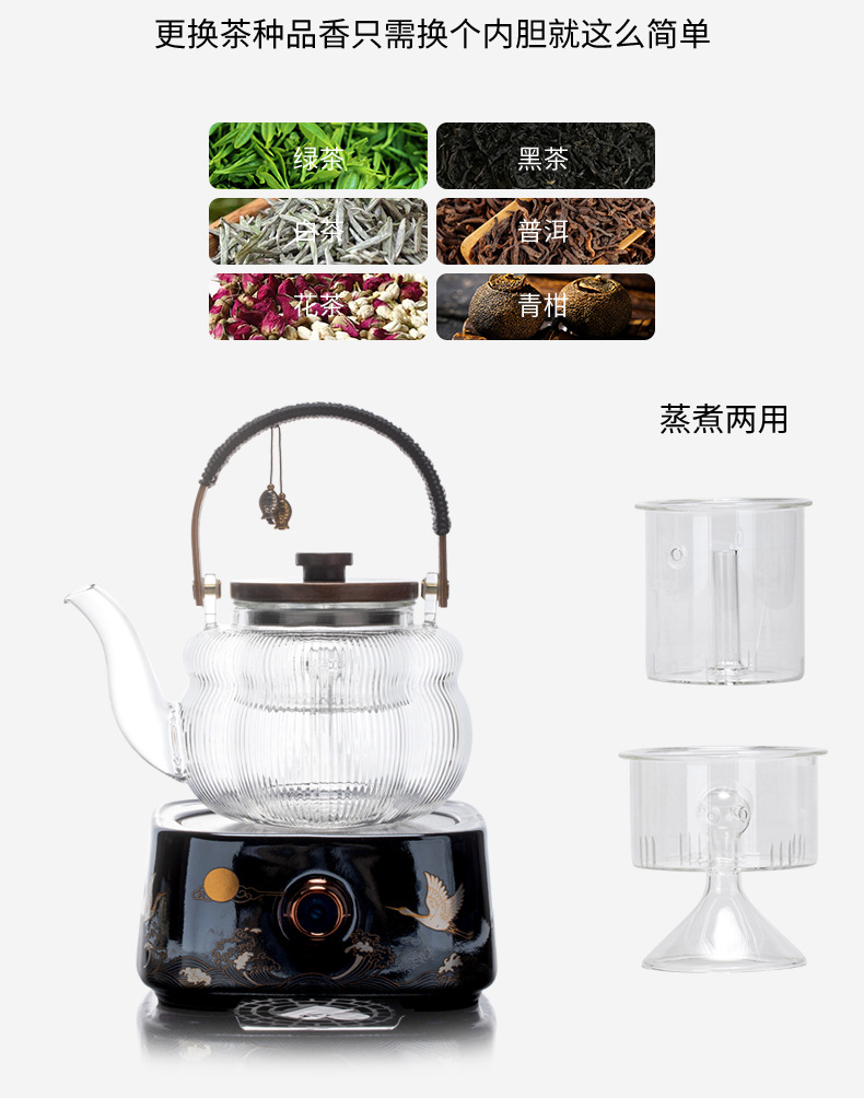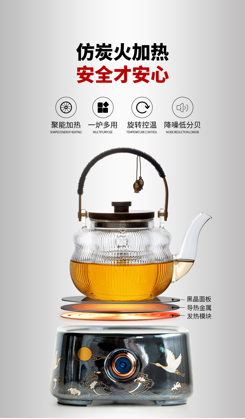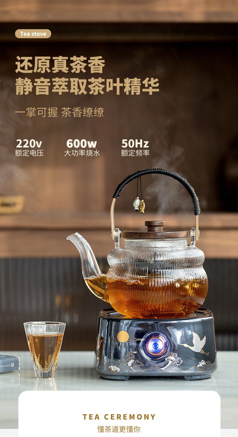 - Ấm trà thủy tinh tích hợp nấu, bếp gốm điện dung tích lớn, dụng cụ đun trà tự động, đun nước, pha trà chống bỏng chuyên dụng