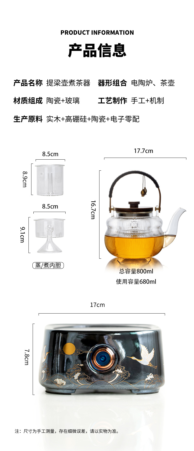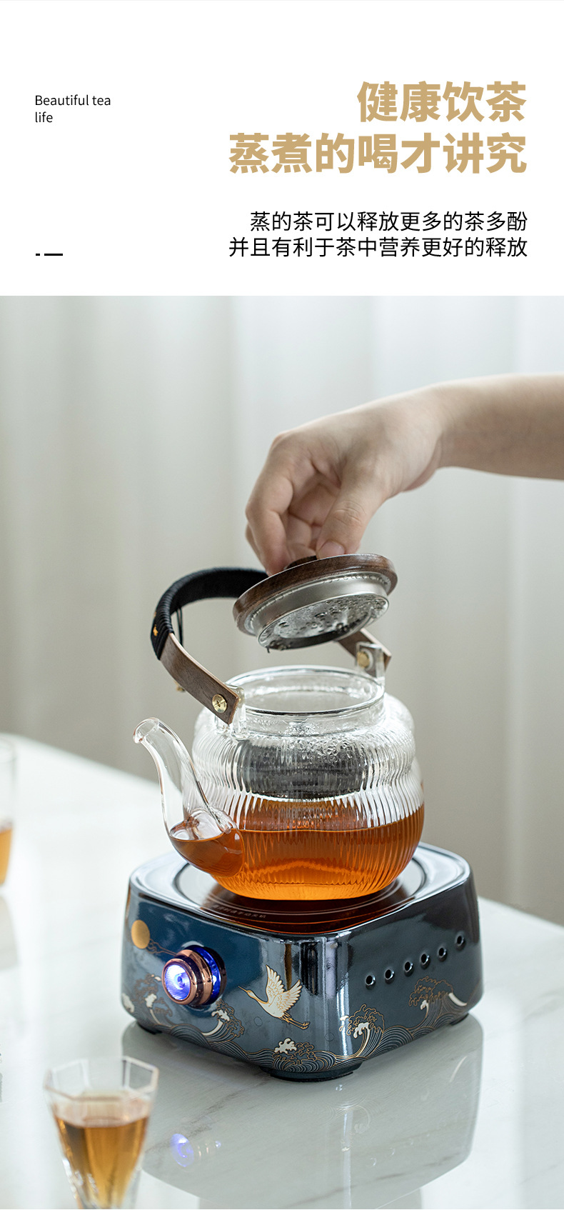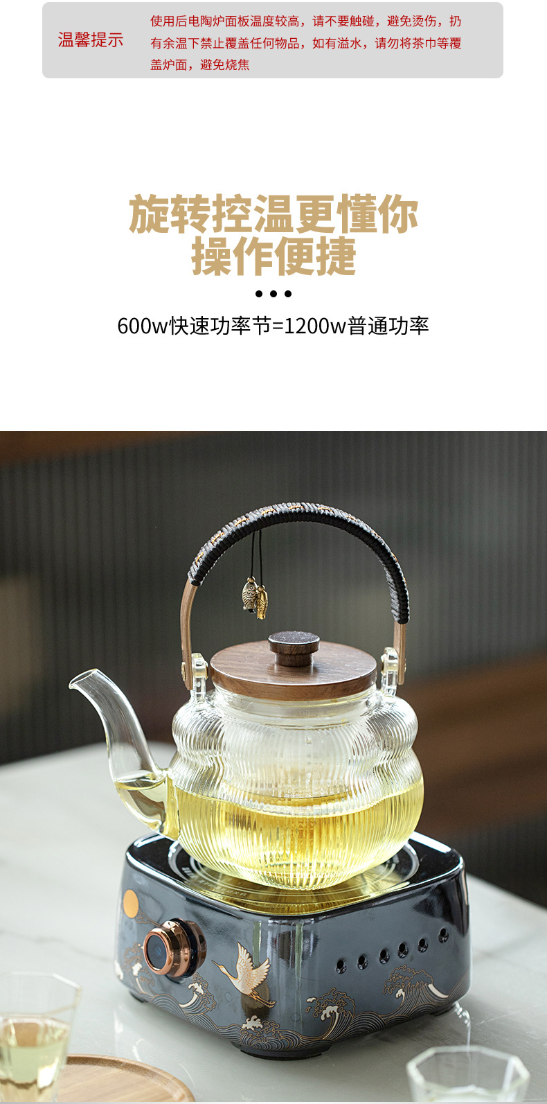 - Ấm trà thủy tinh tích hợp nấu, bếp gốm điện dung tích lớn, dụng cụ đun trà tự động, đun nước, pha trà chống bỏng chuyên dụng