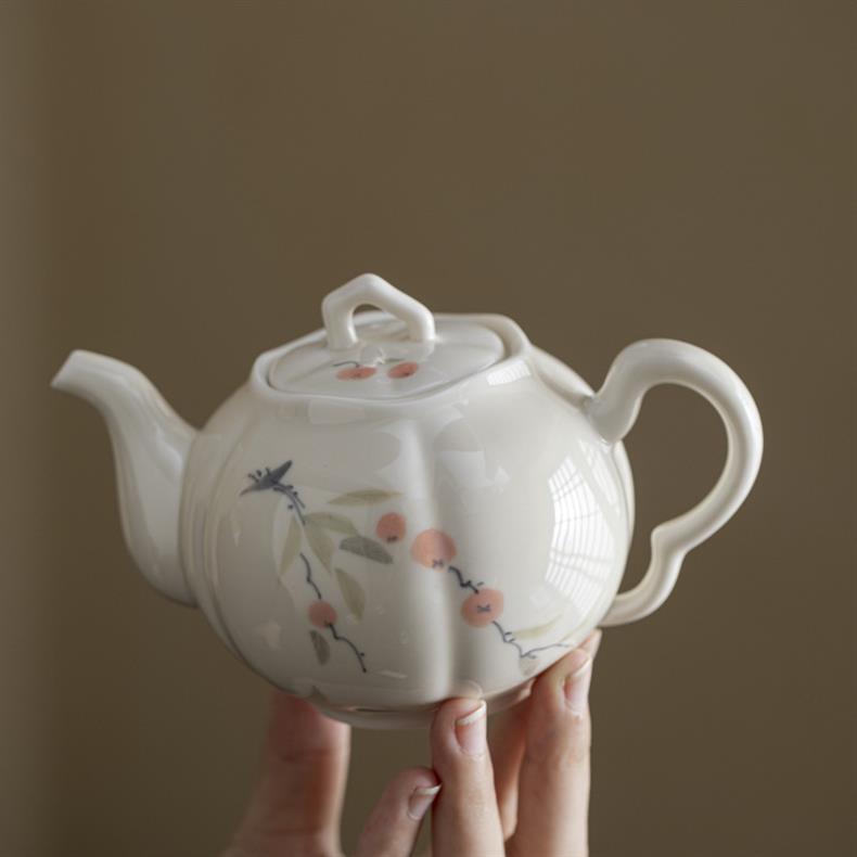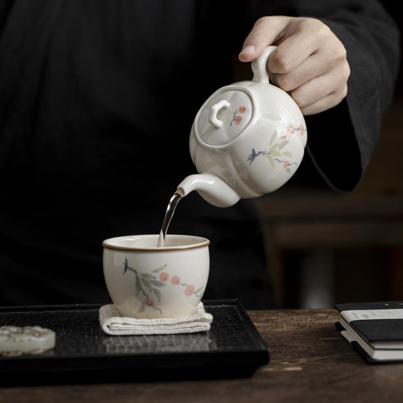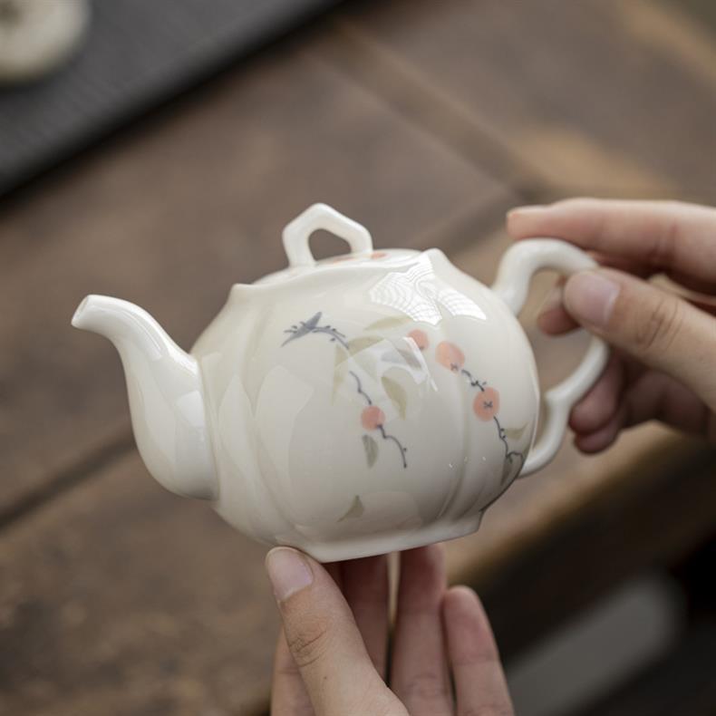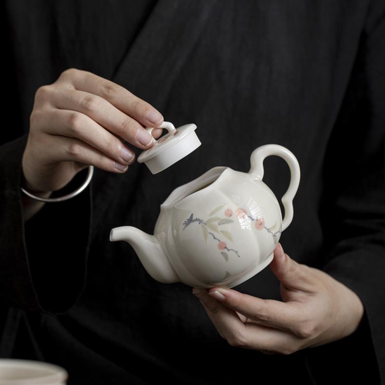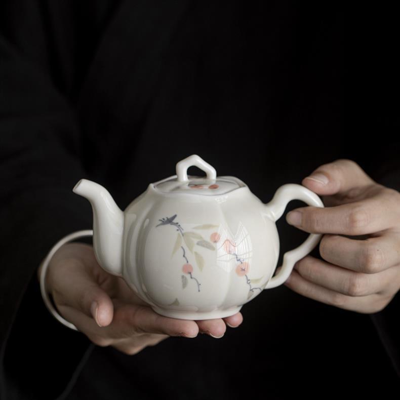 Ấm trà vẽ tay, hồng tráng men màu, ấm bí ngô Ruyi, ấm đơn cổ, dụng cụ pha trà gốm sứ gia dụng