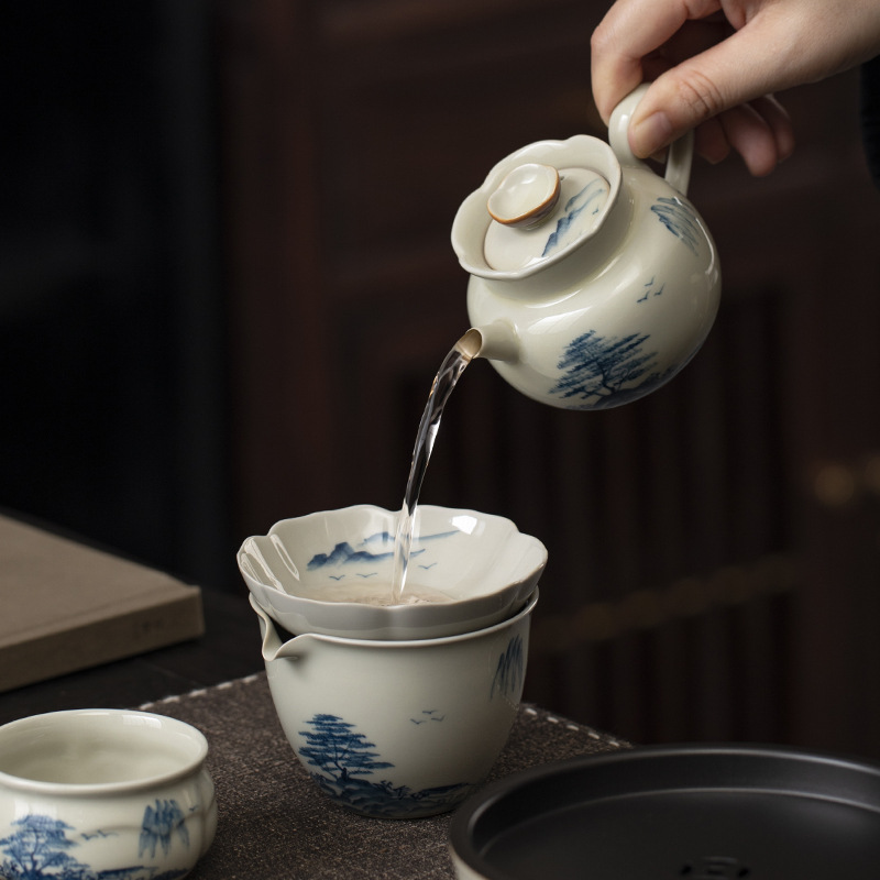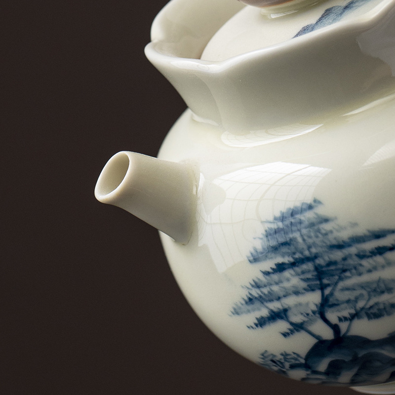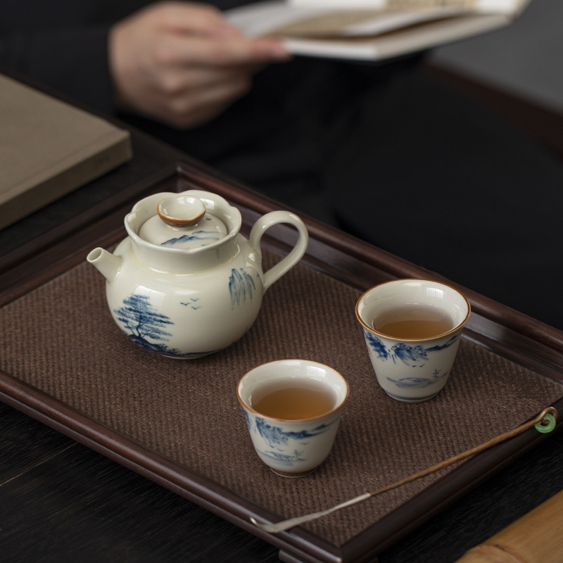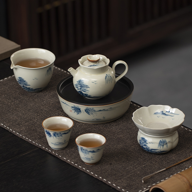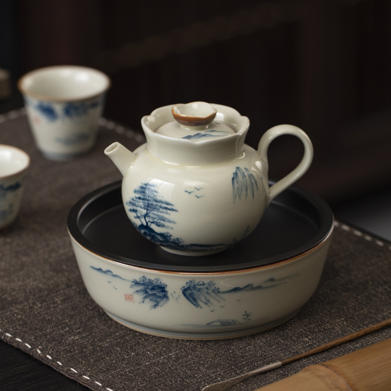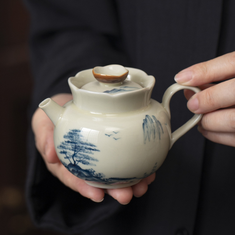 - Ấm trà vẽ tay tráng men với phong cảnh tro gỗ, ấm đơn có lỗ lọc bóng, bộ trà kung fu gia dụng cao cấp để pha trà.