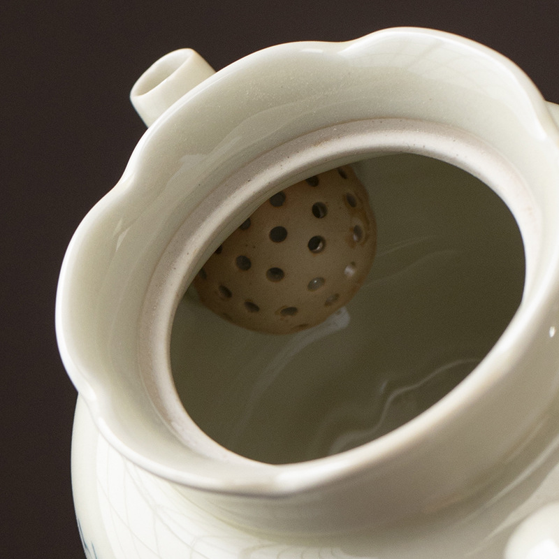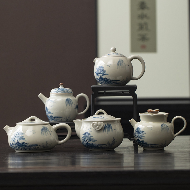 Ấm trà vẽ tay tráng men với phong cảnh tro gỗ, ấm đơn có lỗ lọc bóng, bộ trà kung fu gia dụng cao cấp để pha trà.