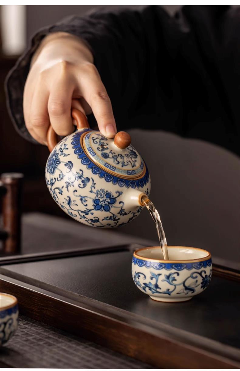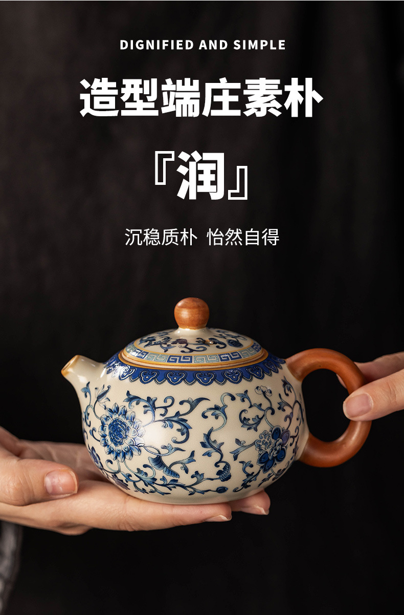 - Ấm trà Xishi gốm sứ trắng xanh mới 2024 ấm trà đơn dụng cụ pha trà Kung Fu gốm sứ cao cấp gia dụng