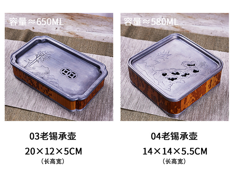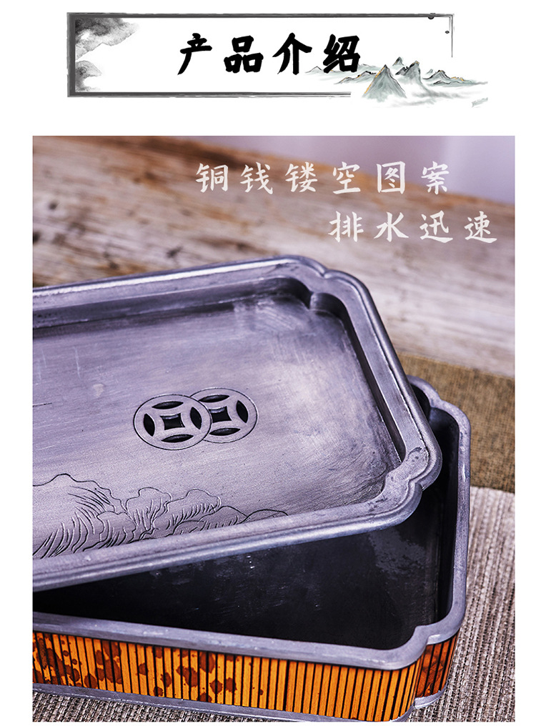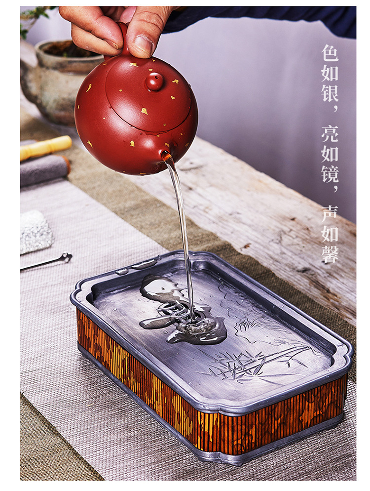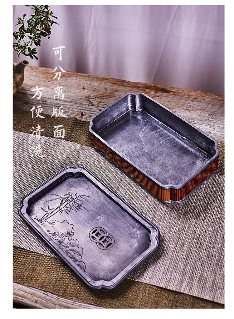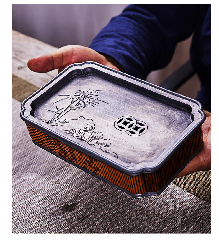 Ấm tre Tương Phi, khay đựng nước hình chữ nhật thiếc cổ, khay đựng trà nhỏ, khay đựng trà, khay đựng trà gia dụng, dụng cụ trà Kung Fu, ấm