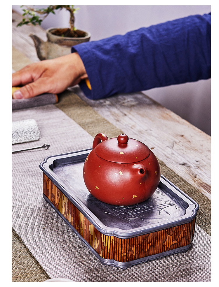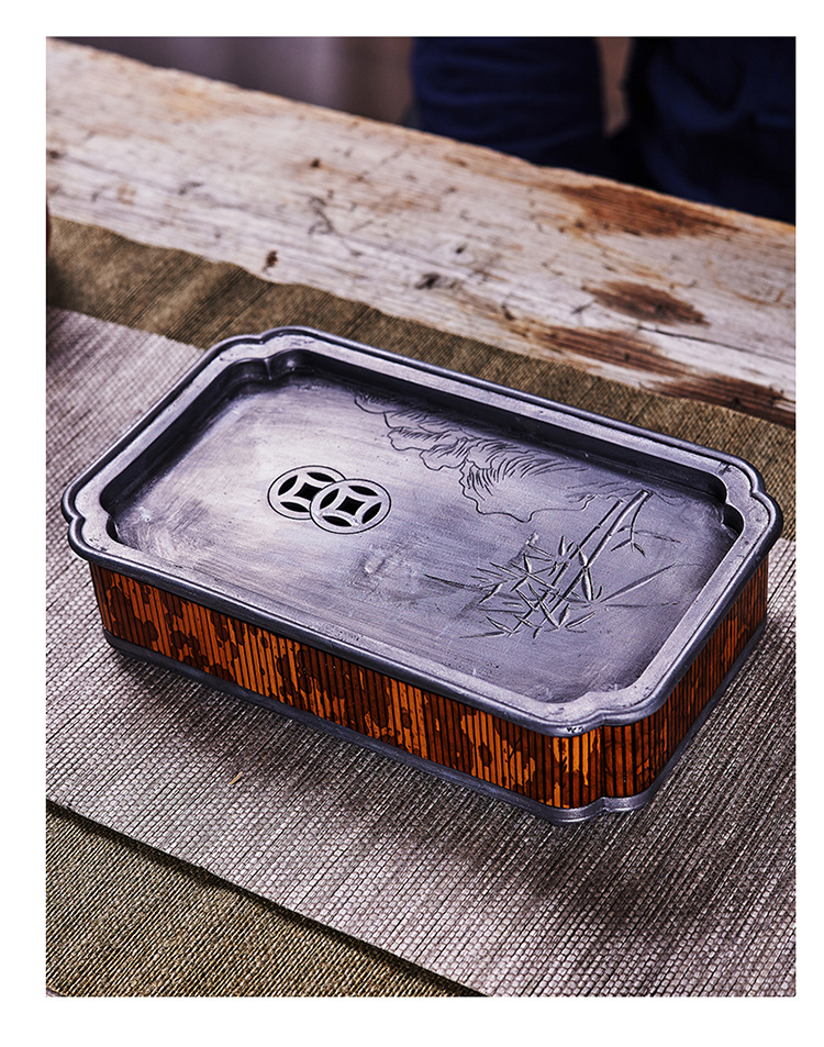 - Ấm tre Tương Phi, khay đựng nước hình chữ nhật thiếc cổ, khay đựng trà nhỏ, khay đựng trà, khay đựng trà gia dụng, dụng cụ trà Kung Fu, ấm