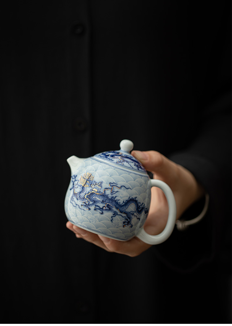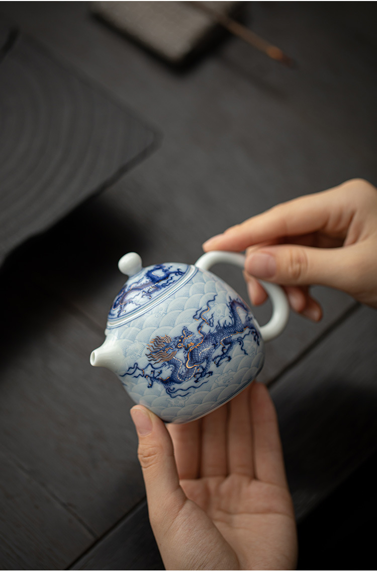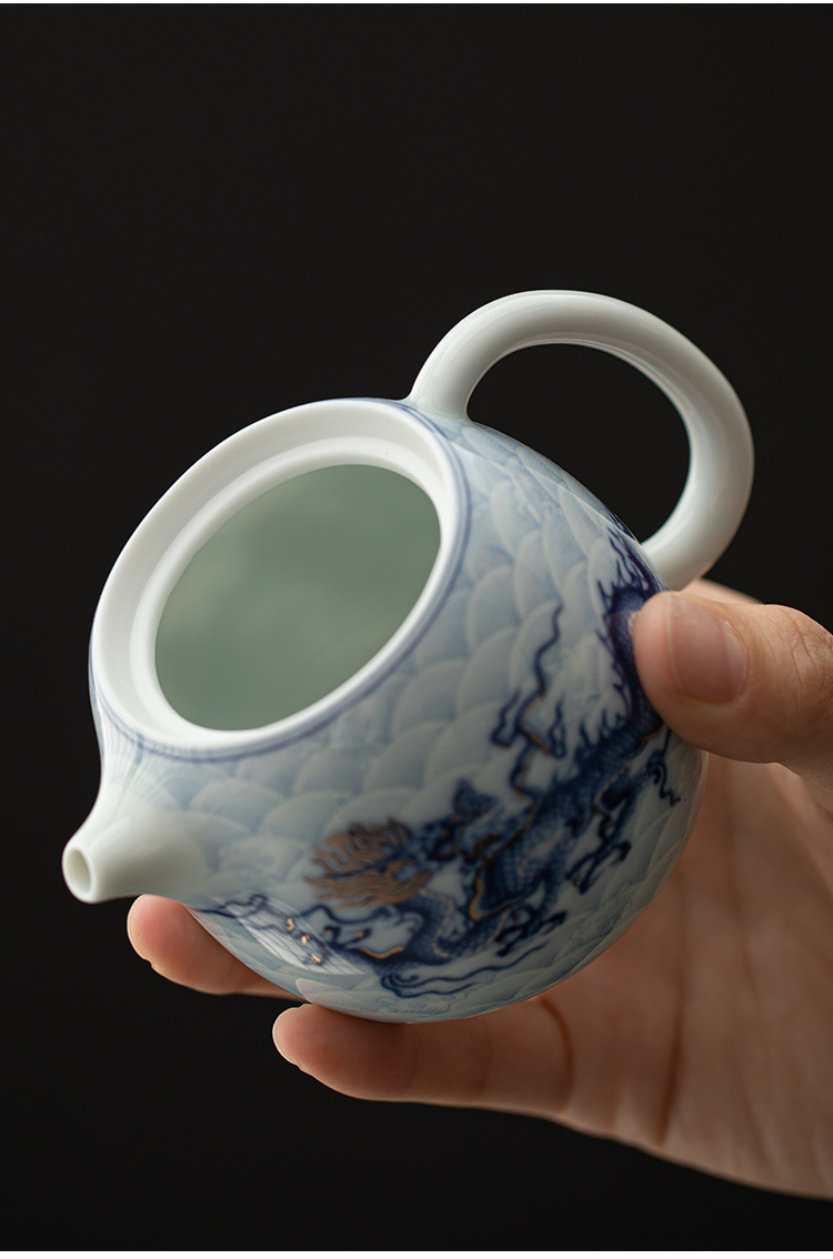 - Ấm trứng rồng hoa văn rồng vàng bạc ấm trà gốm sứ ấm đơn dụng cụ pha trà Kung Fu cao cấp ấm pha trà gia dụng cổ điển dung tích nhỏ