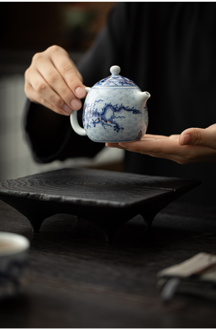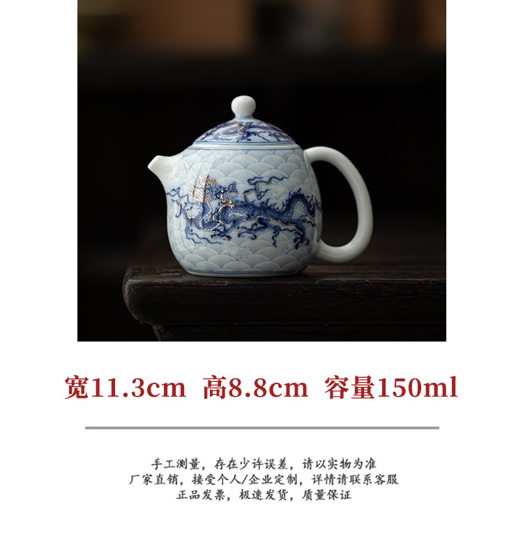 Ấm trứng rồng hoa văn rồng vàng bạc ấm trà gốm sứ ấm đơn dụng cụ pha trà Kung Fu cao cấp ấm pha trà gia dụng cổ điển dung tích nhỏ