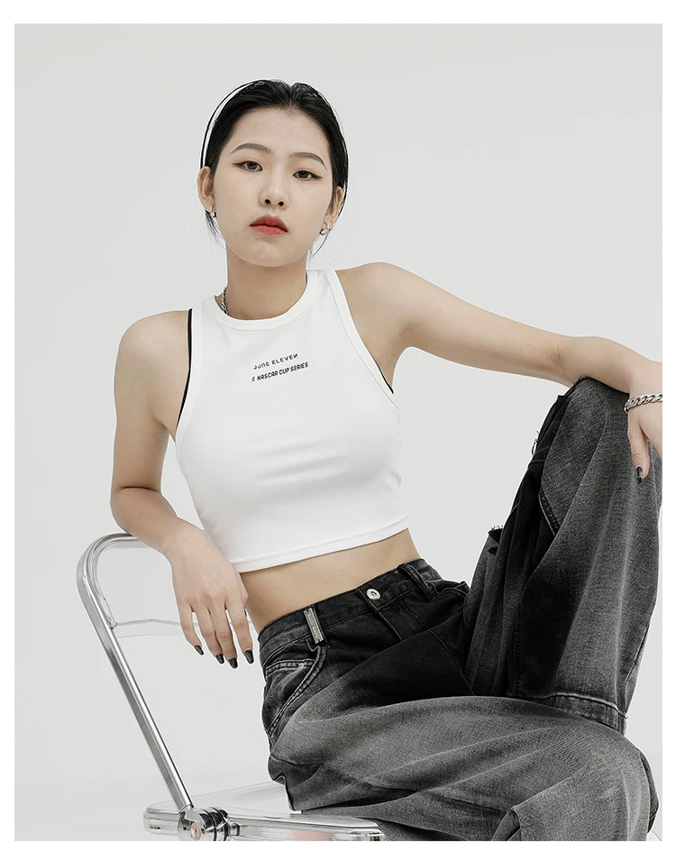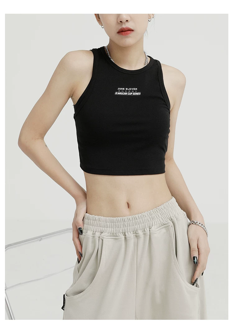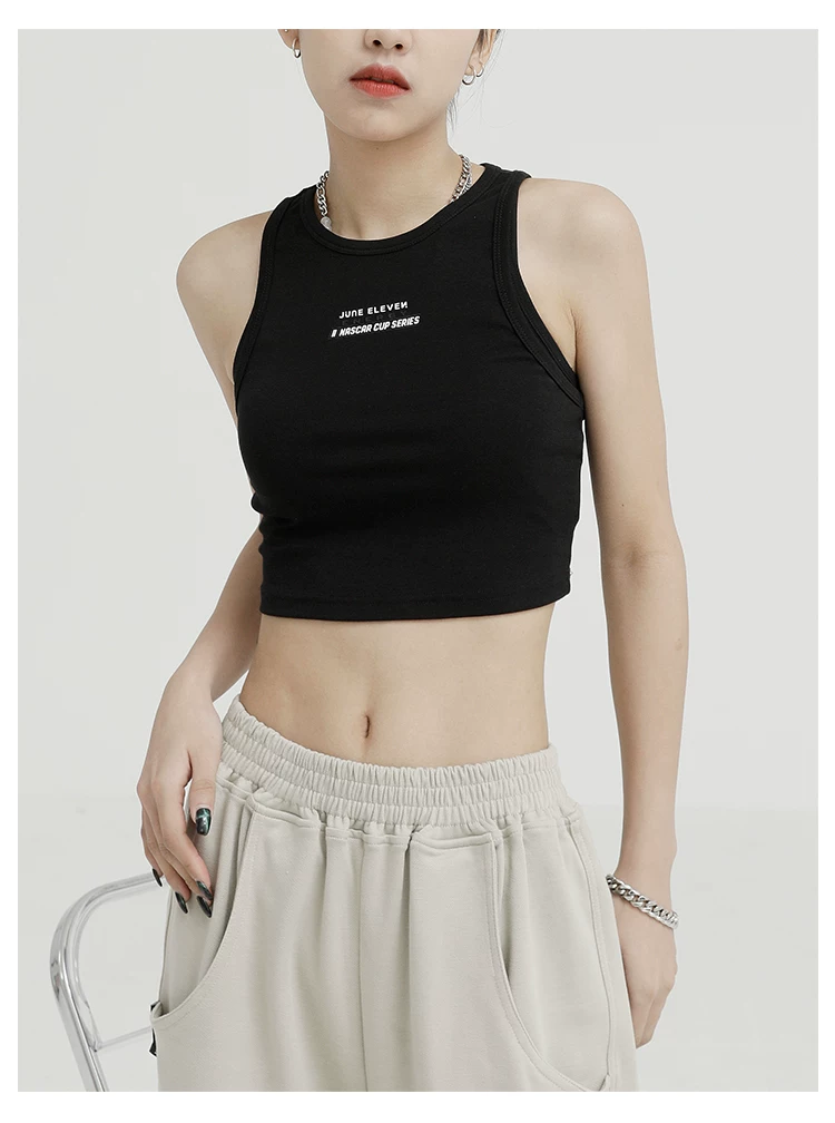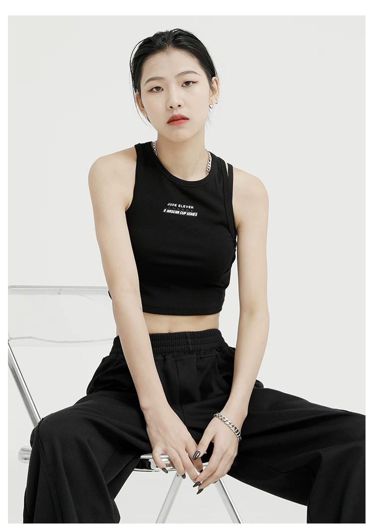 Áo ba lỗ màu đen của KEN STUDIO dành cho nữ, thiết kế độc đáo, phong cách mùa hè mới, áo sơ mi ngắn lưng cao