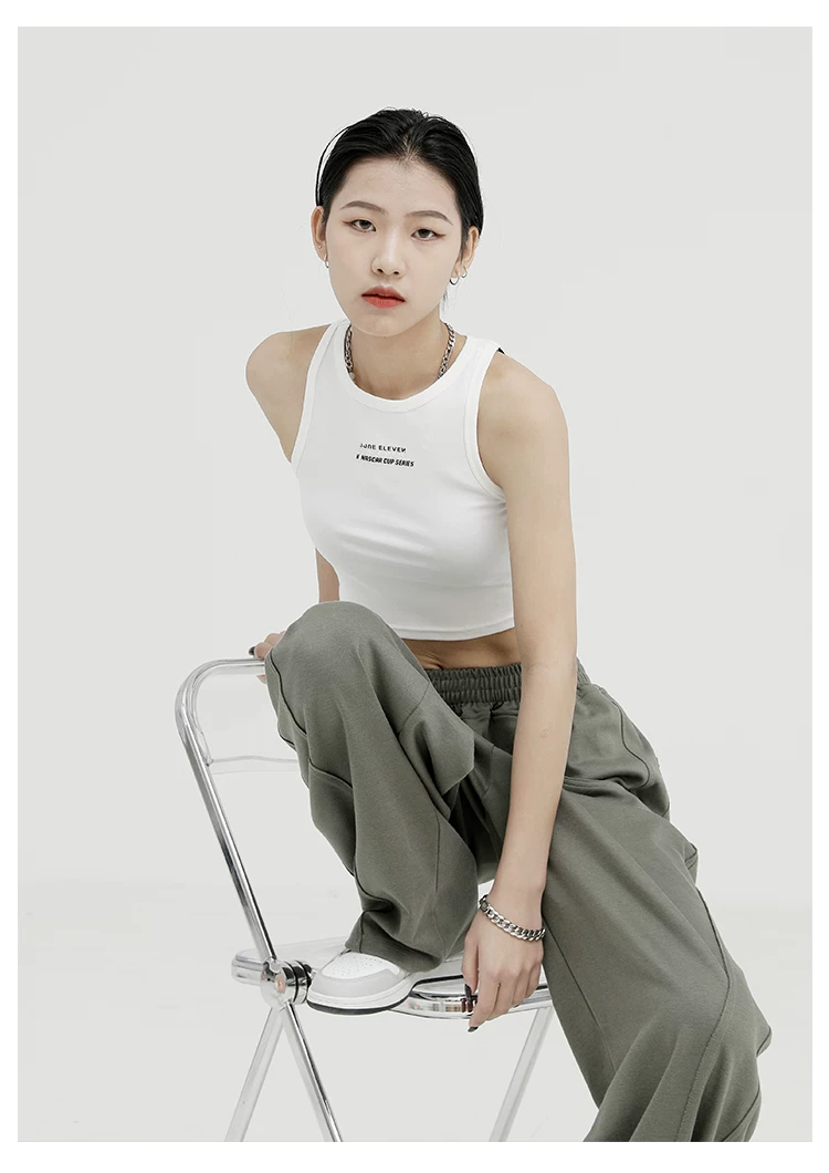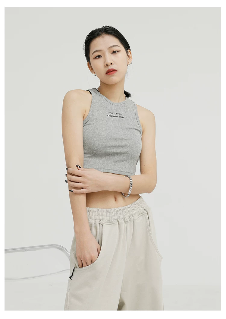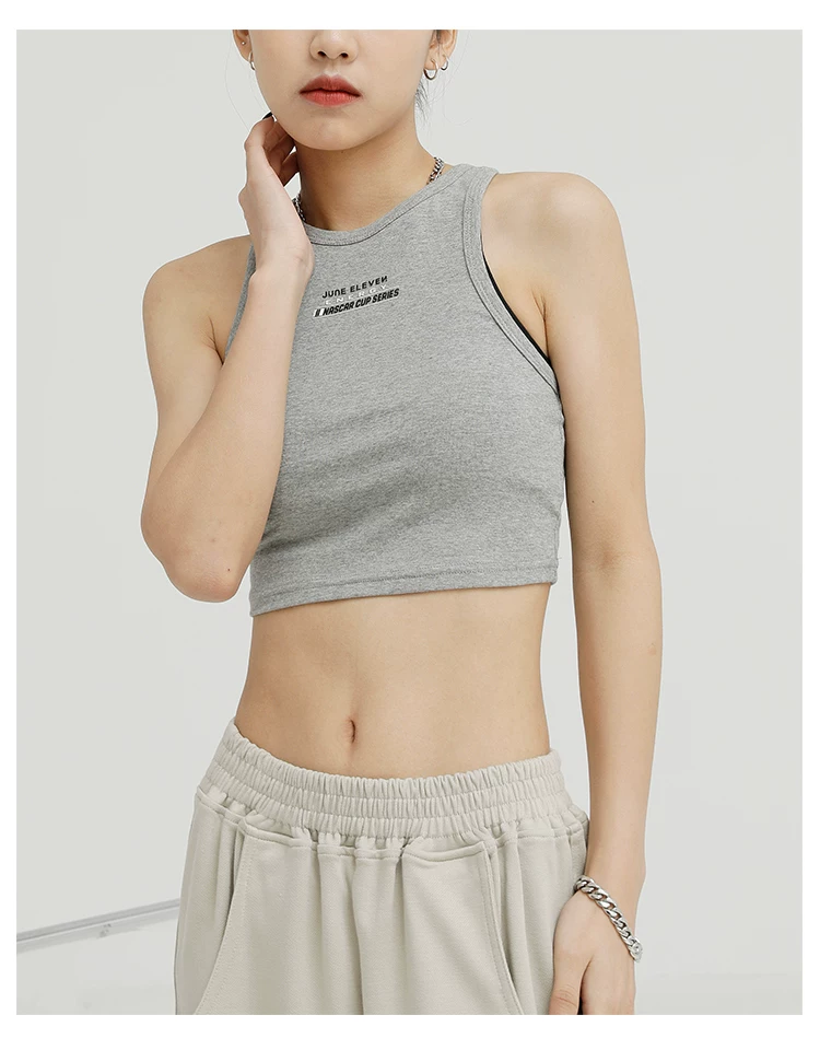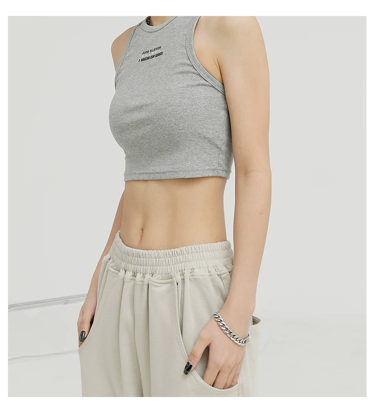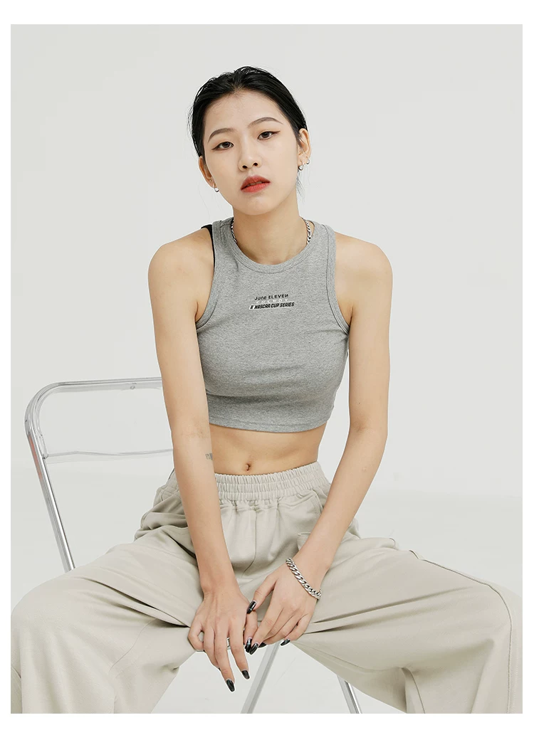 Áo ba lỗ màu đen của KEN STUDIO dành cho nữ, thiết kế độc đáo, phong cách mùa hè mới, áo sơ mi ngắn lưng cao