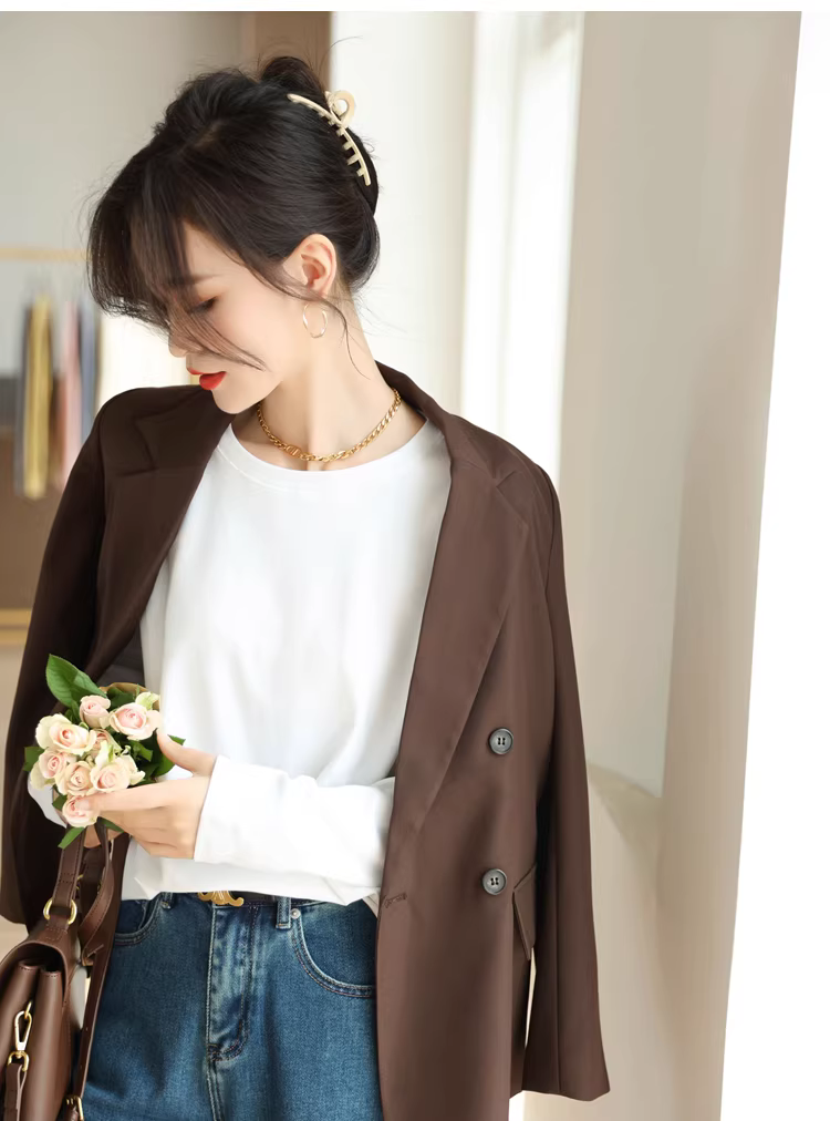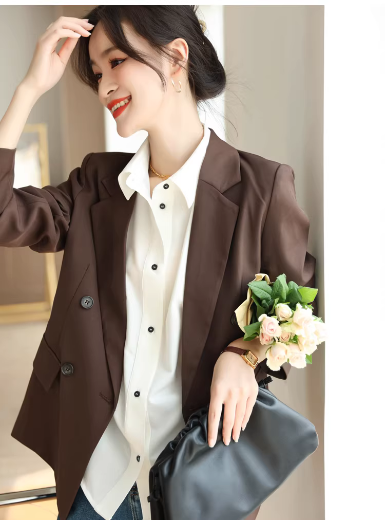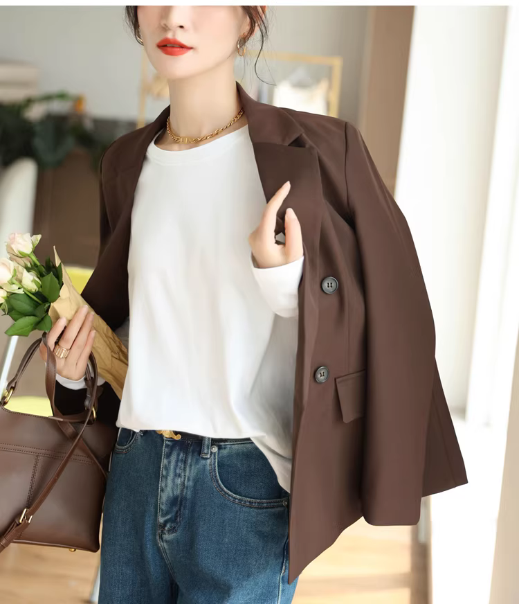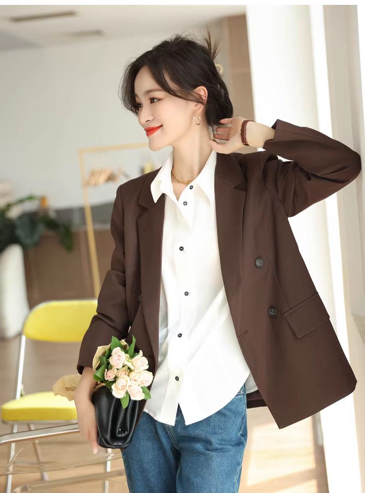 - Áo blazer dài tay dáng rộng màu trơn trẻ trung CBD Qiaojiaren dành cho nữ, màu trơn đa năng cho mùa thu.