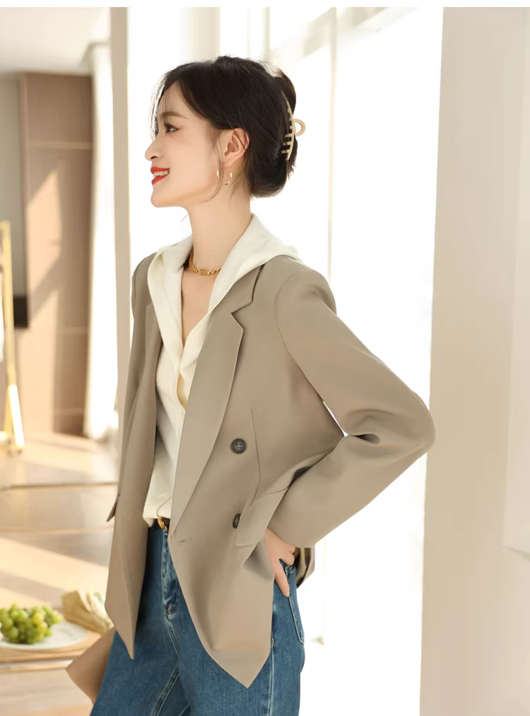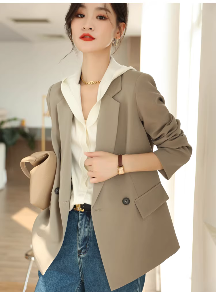 Áo blazer dài tay dáng rộng màu trơn trẻ trung CBD Qiaojiaren dành cho nữ, màu trơn đa năng cho mùa thu.