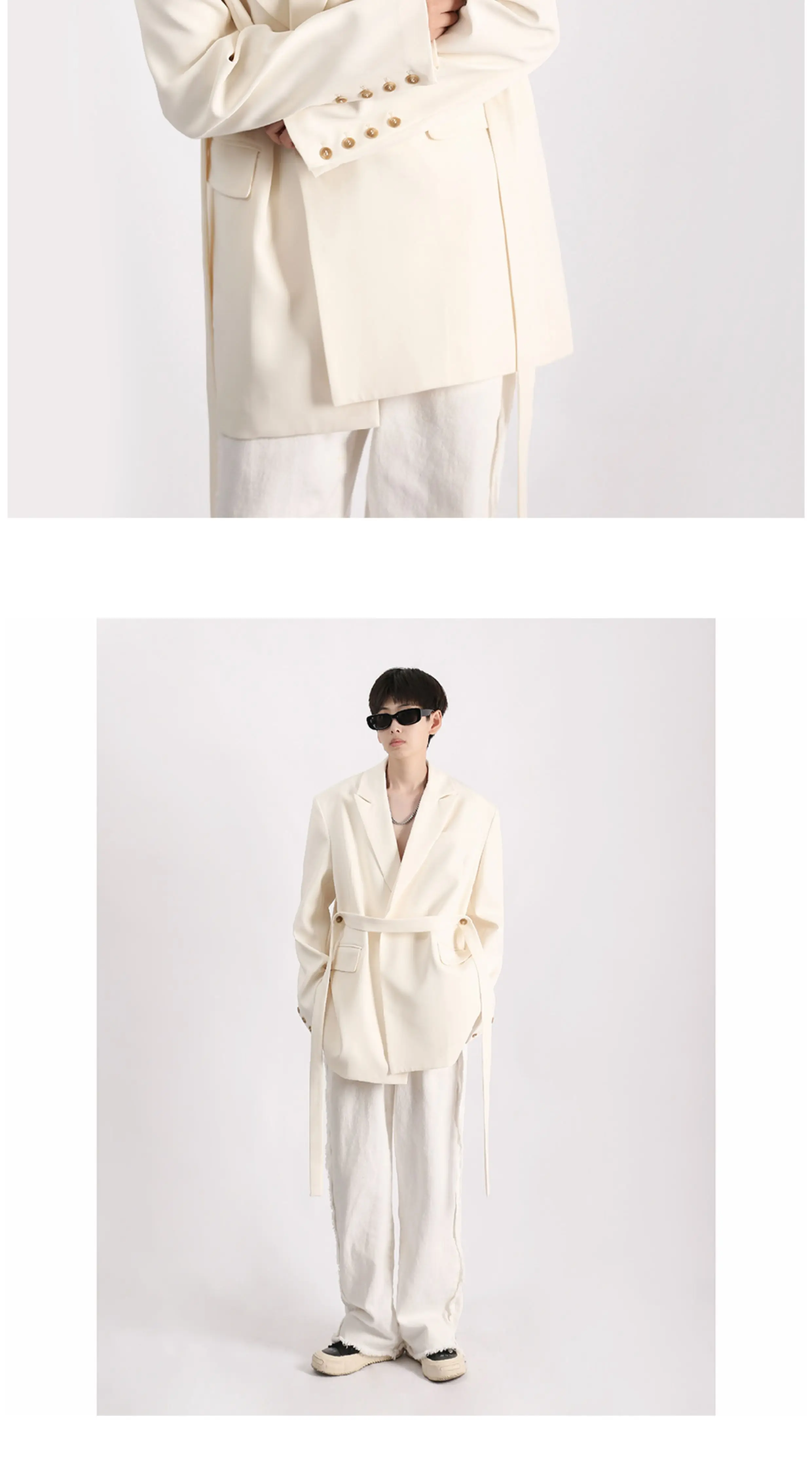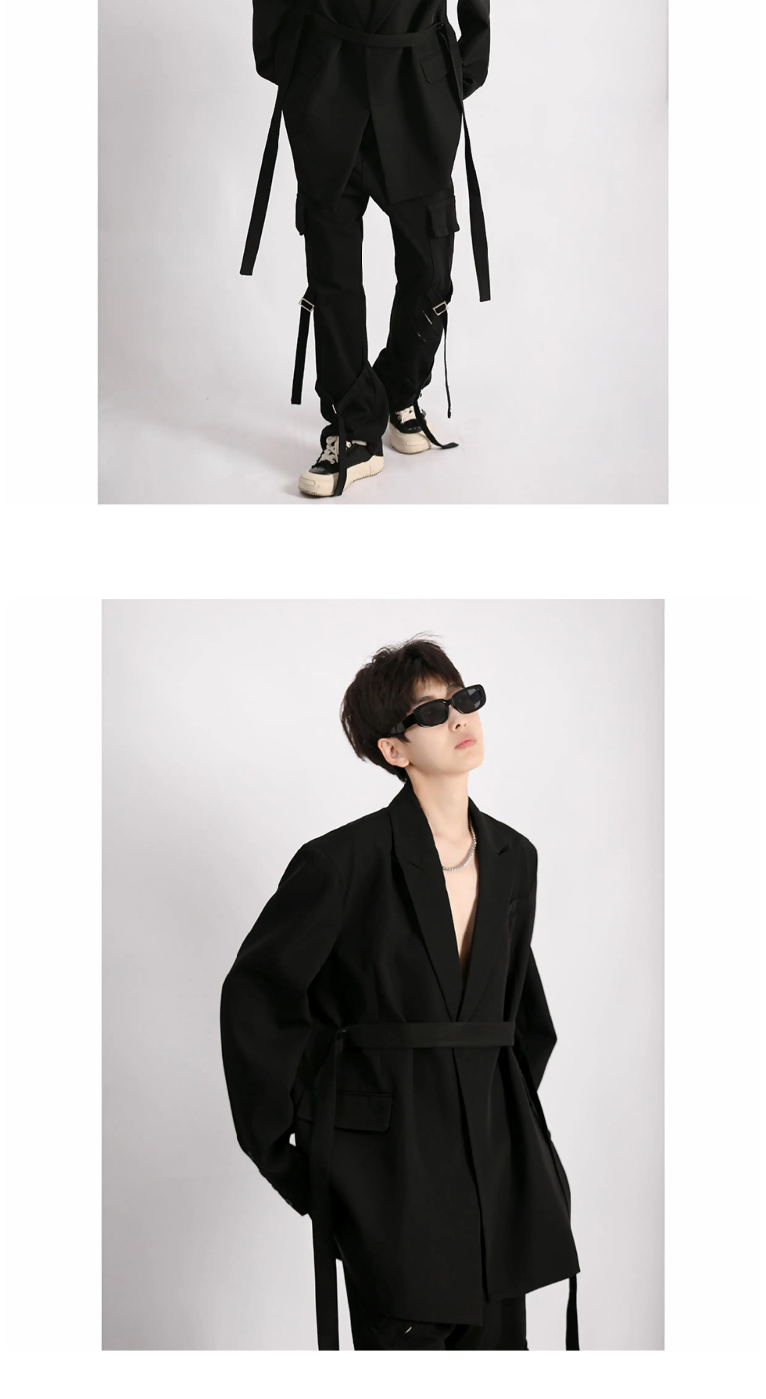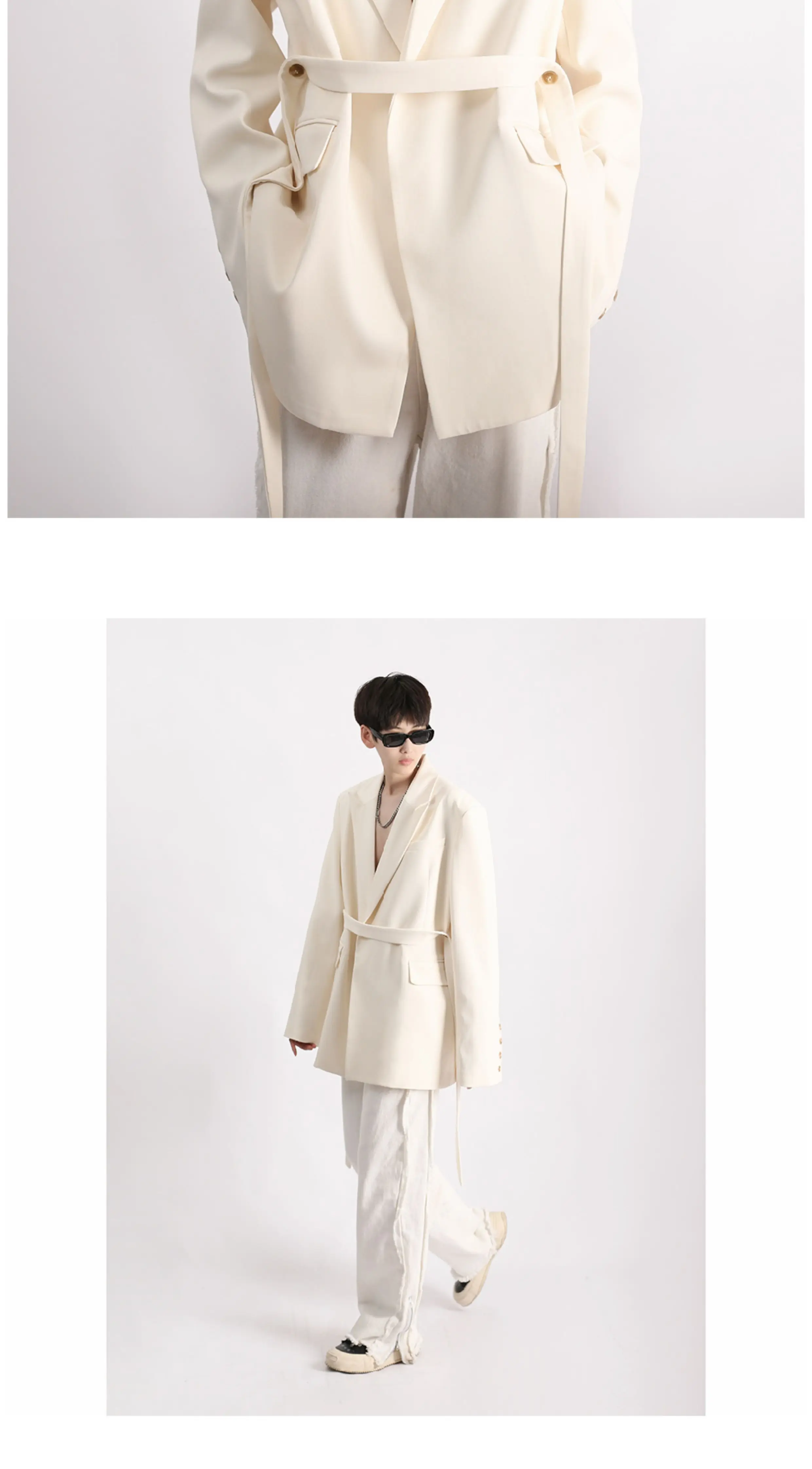 - Áo blazer nam phong cách mới 2023 có thiết kế thắt lưng, áo khoác dáng rộng hợp thời trang phong cách Hàn Quốc cho mùa thu.