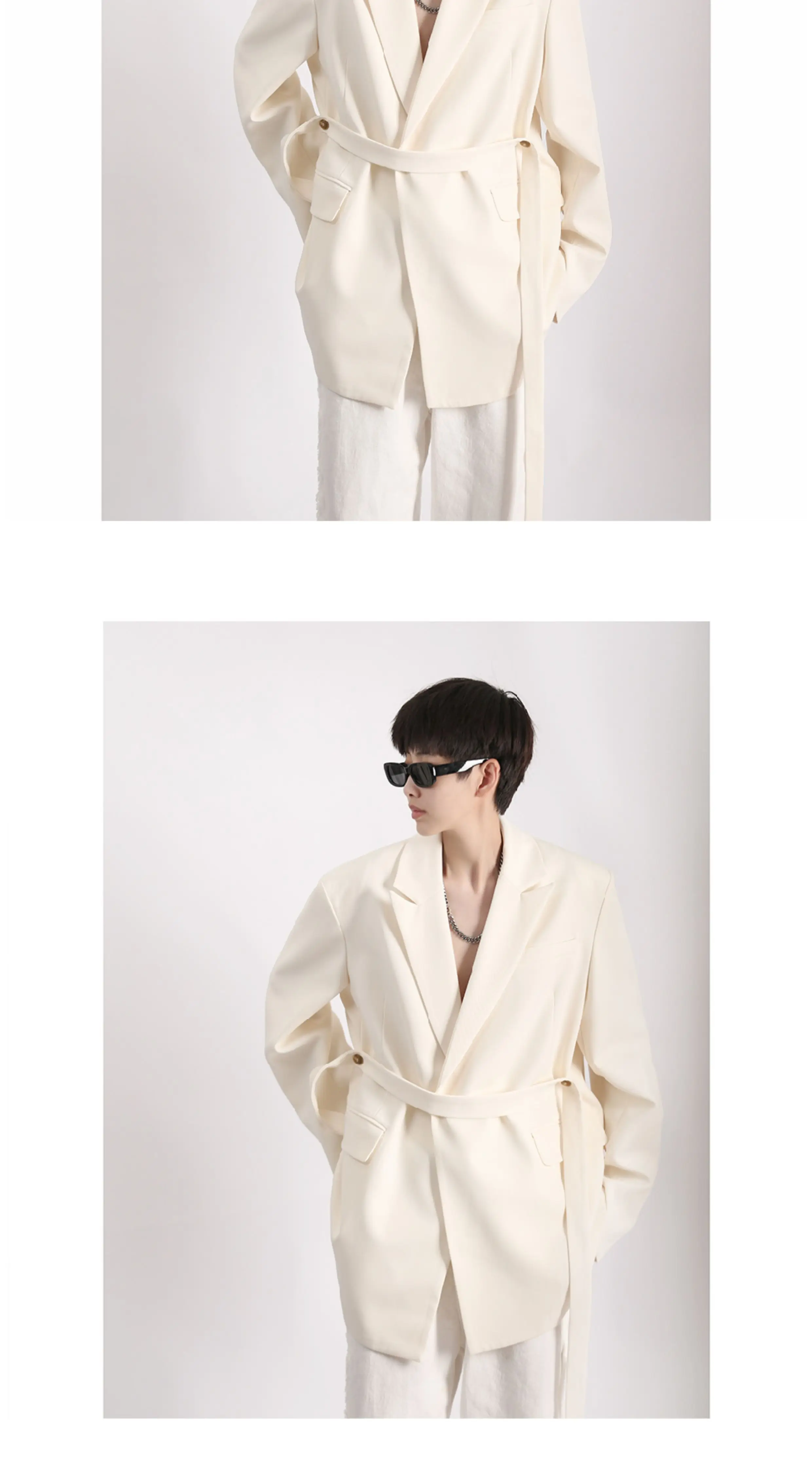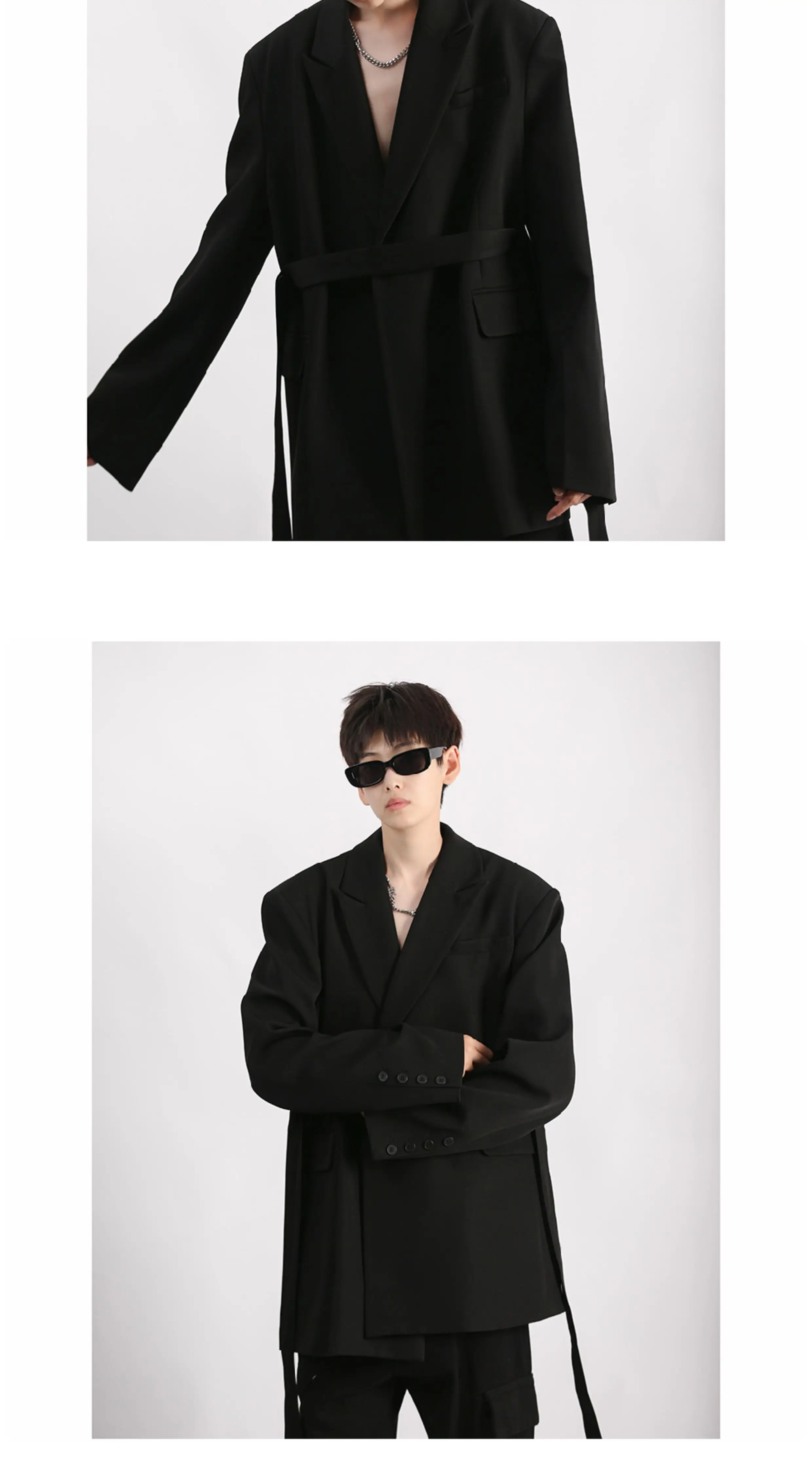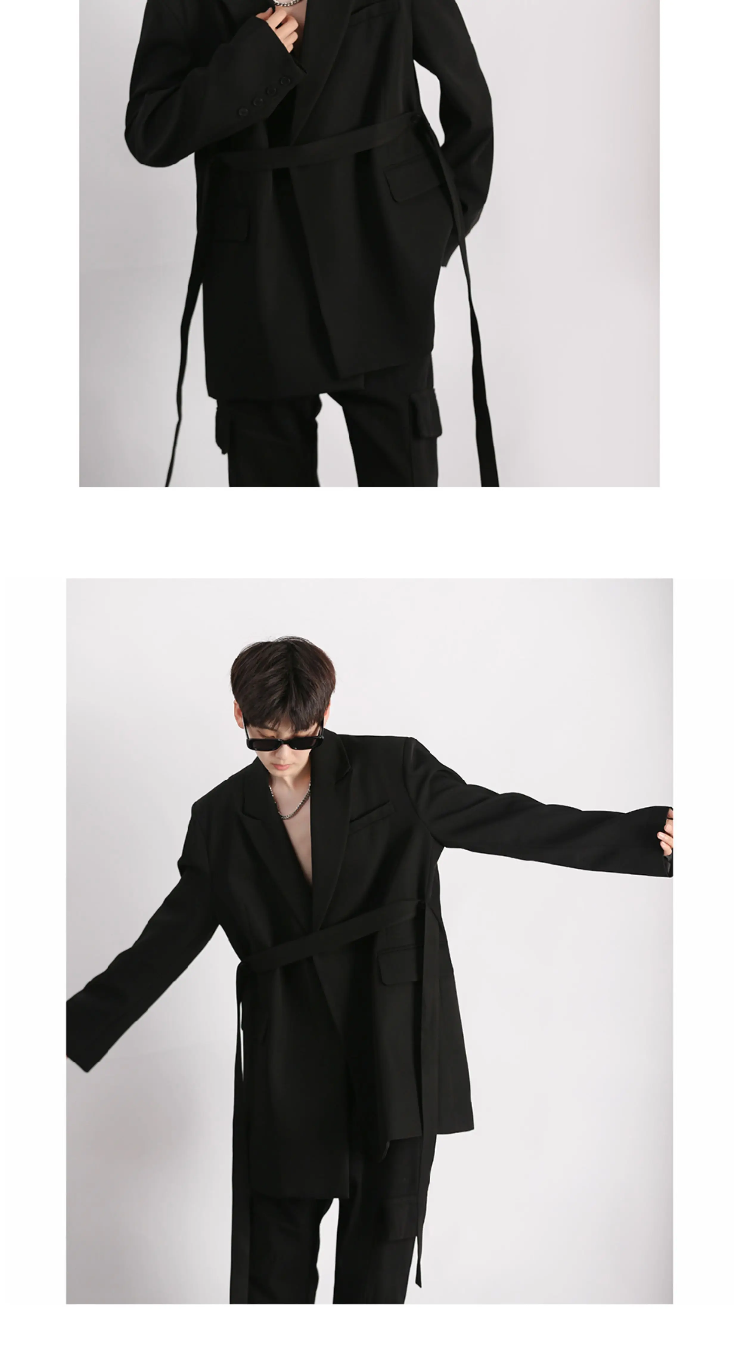 Áo blazer nam phong cách mới 2023 có thiết kế thắt lưng, áo khoác dáng rộng hợp thời trang phong cách Hàn Quốc cho mùa thu.