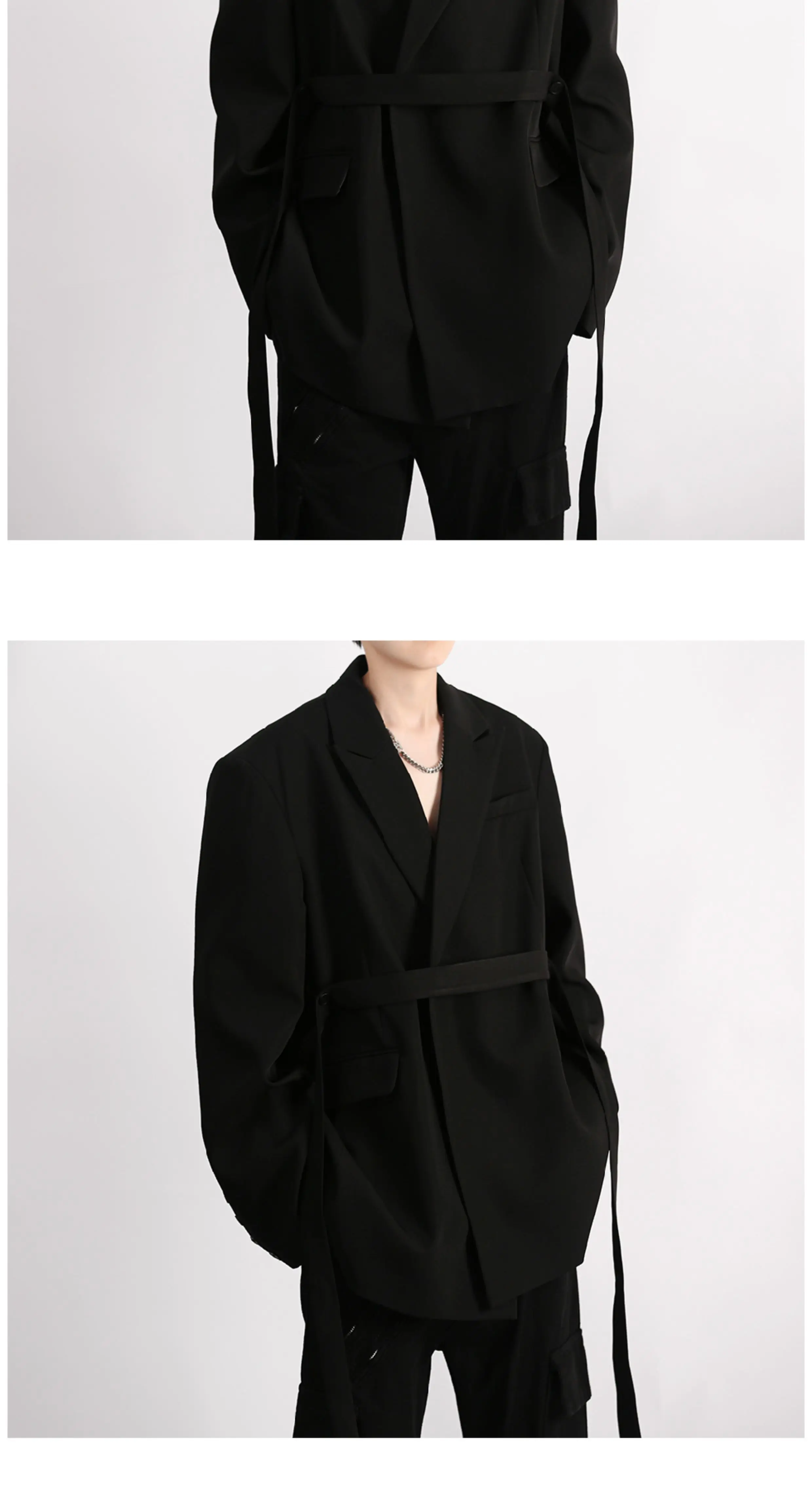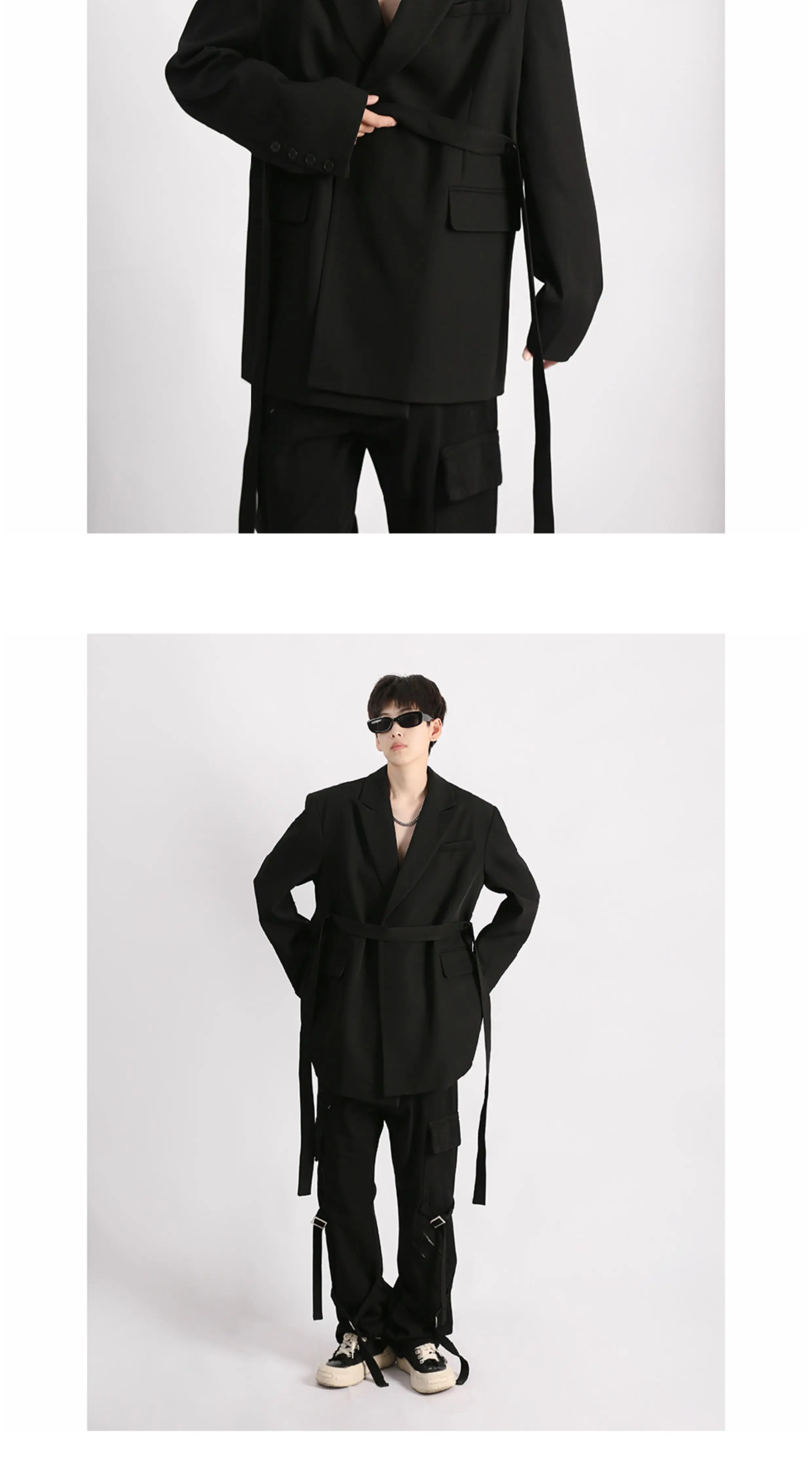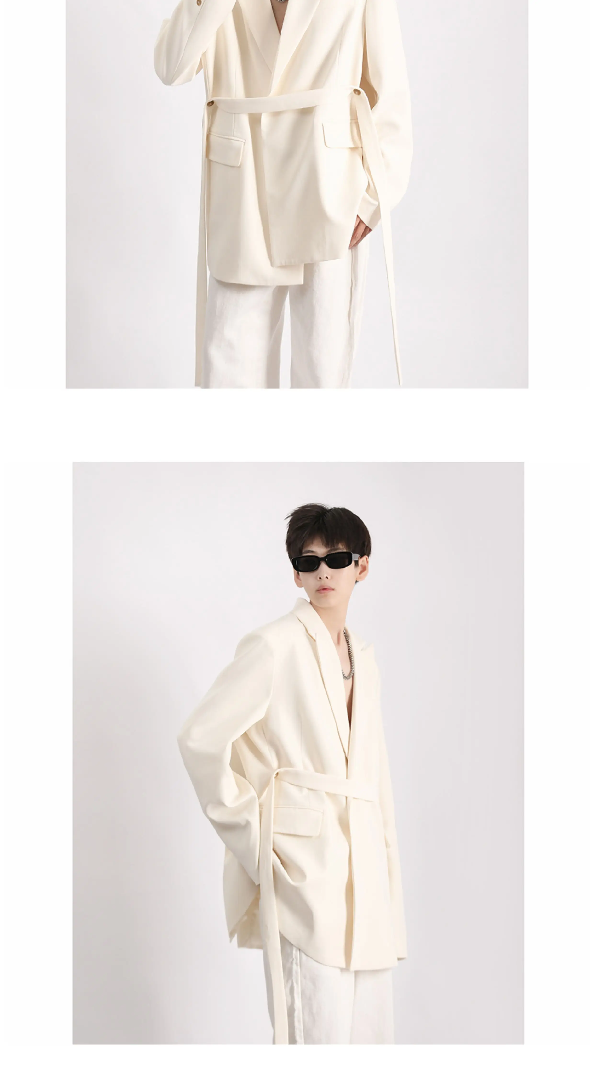 Áo blazer nam phong cách mới 2023 có thiết kế thắt lưng, áo khoác dáng rộng hợp thời trang phong cách Hàn Quốc cho mùa thu.