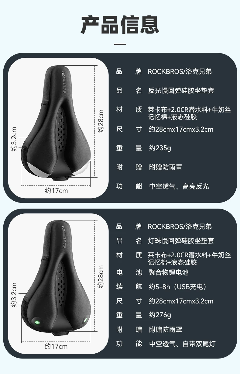 - Áo bọc yên xe đạp Rock Brothers dày dặn bằng silicon rỗng, dành cho nam và nữ, xe đạp leo núi, xe đạp đường trường