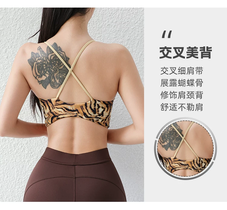 Áo bra thể thao in họa tiết da báo gợi cảm, thiết kế lưng đẹp tích hợp, kiểu dáng độc đáo, áo hai dây hở lưng.