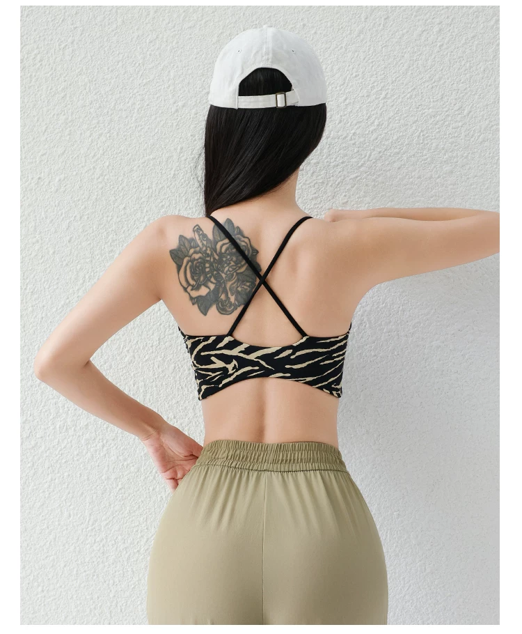 - Áo bra thể thao in họa tiết da báo gợi cảm, thiết kế lưng đẹp tích hợp, kiểu dáng độc đáo, áo hai dây hở lưng.