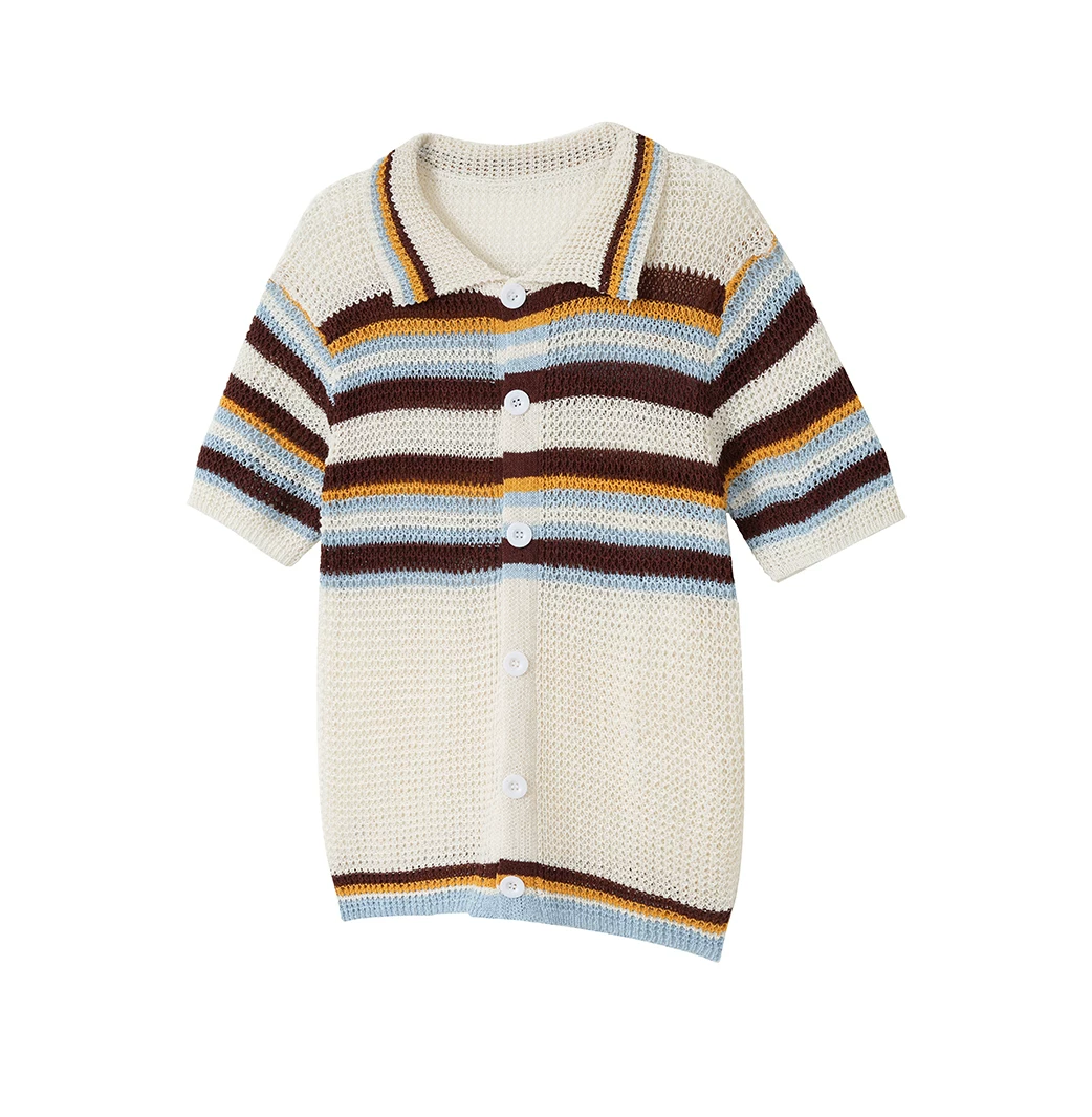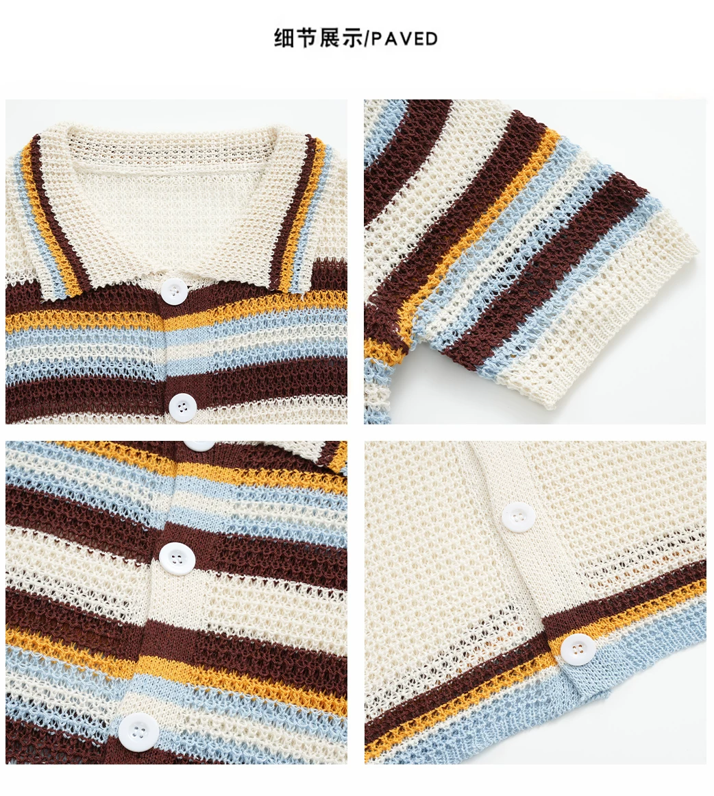 Áo cardigan dệt kim sọc cổ điển kiểu Mỹ dành cho nam và nữ, áo mùa hè thoáng khí, dáng rộng, áo khoác cặp đôi phong cách thời thượng, cá tính.