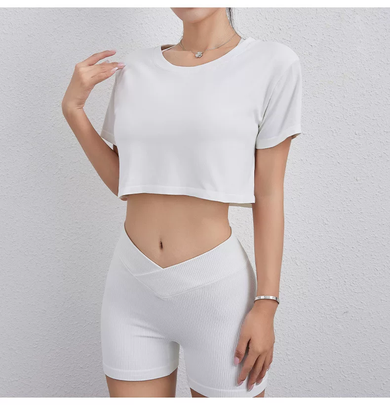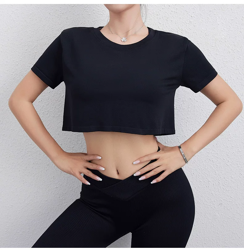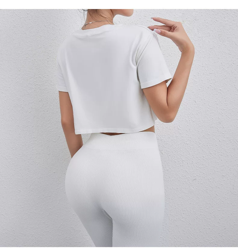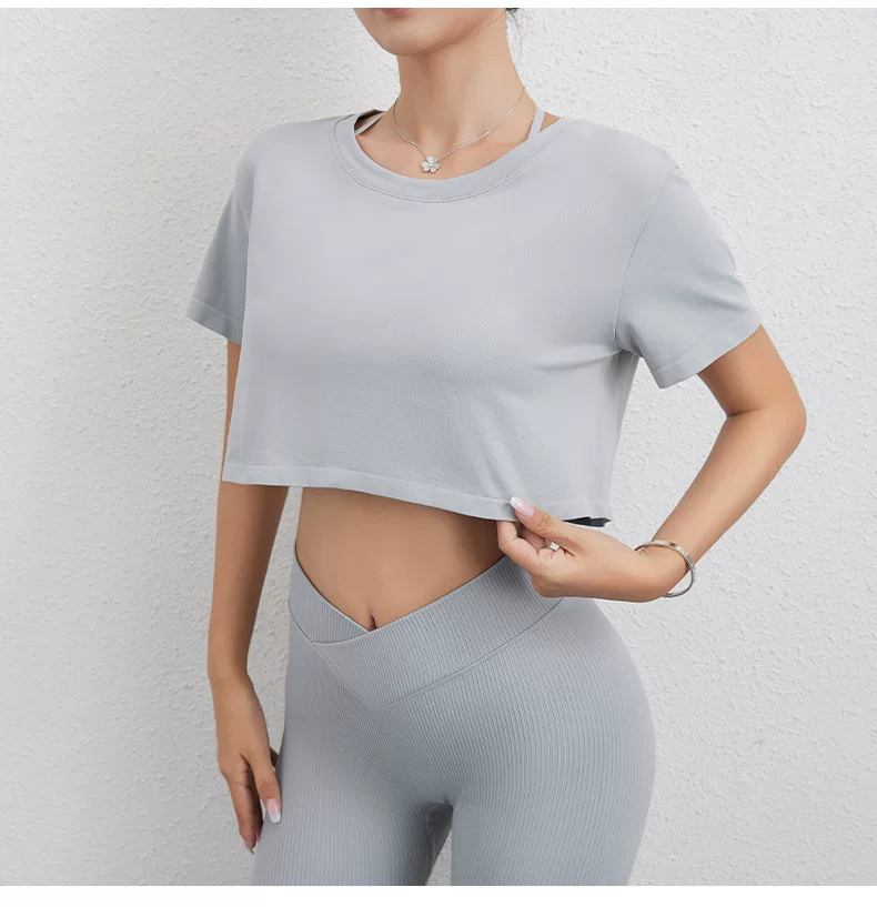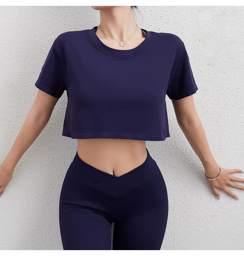 - Áo chạy bộ và tập thể dục tay ngắn, rộng rãi, thoáng khí, cổ tròn, kiểu dáng giản dị, đồ thể thao nhanh khô, áo phông tập yoga dành cho nữ