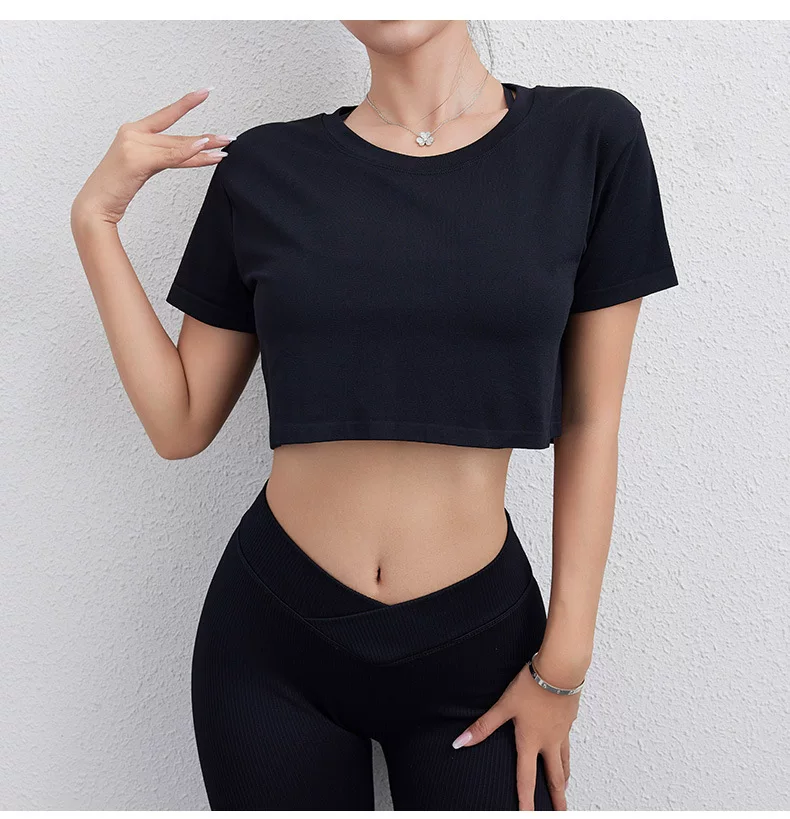 Áo chạy bộ và tập thể dục tay ngắn, rộng rãi, thoáng khí, cổ tròn, kiểu dáng giản dị, đồ thể thao nhanh khô, áo phông tập yoga dành cho nữ