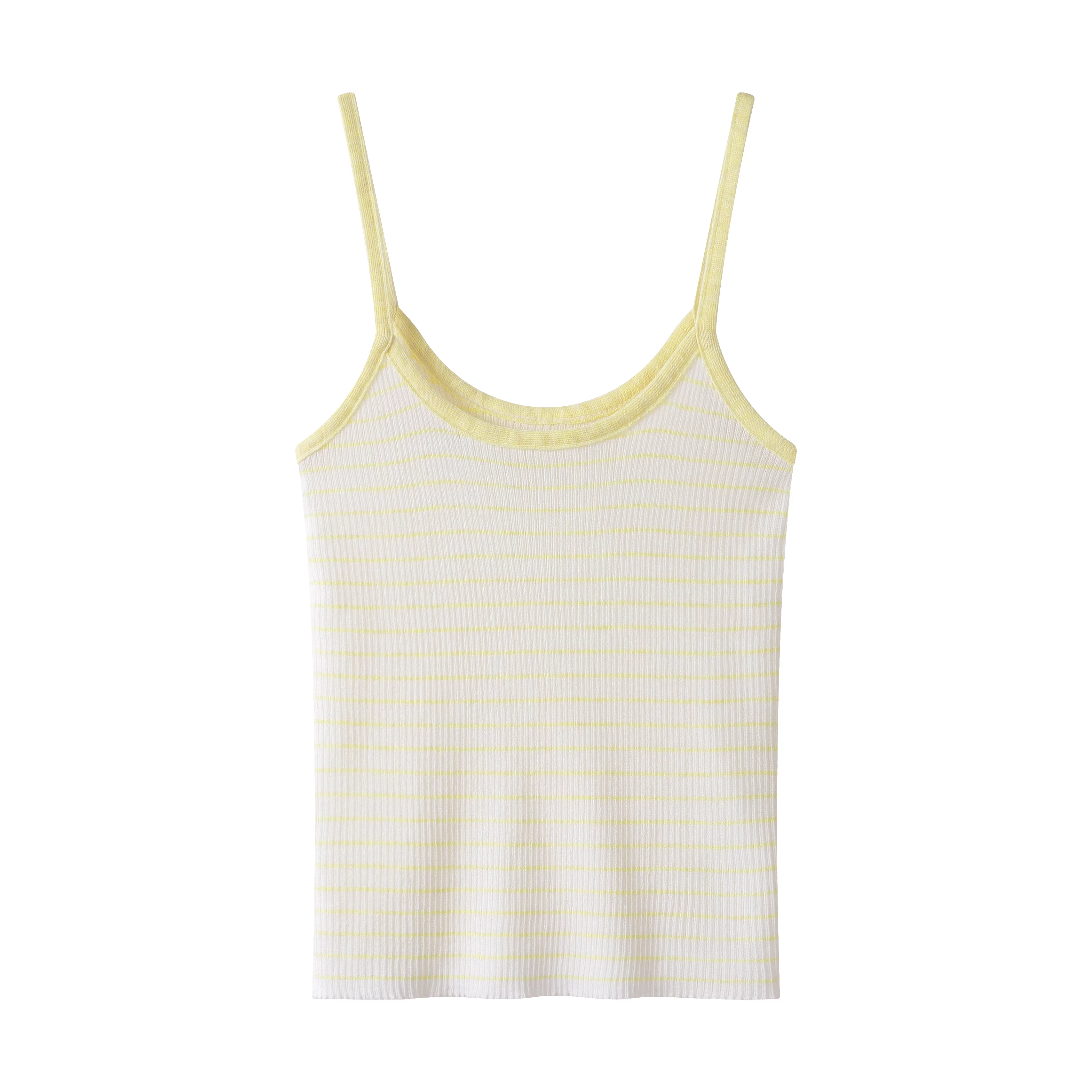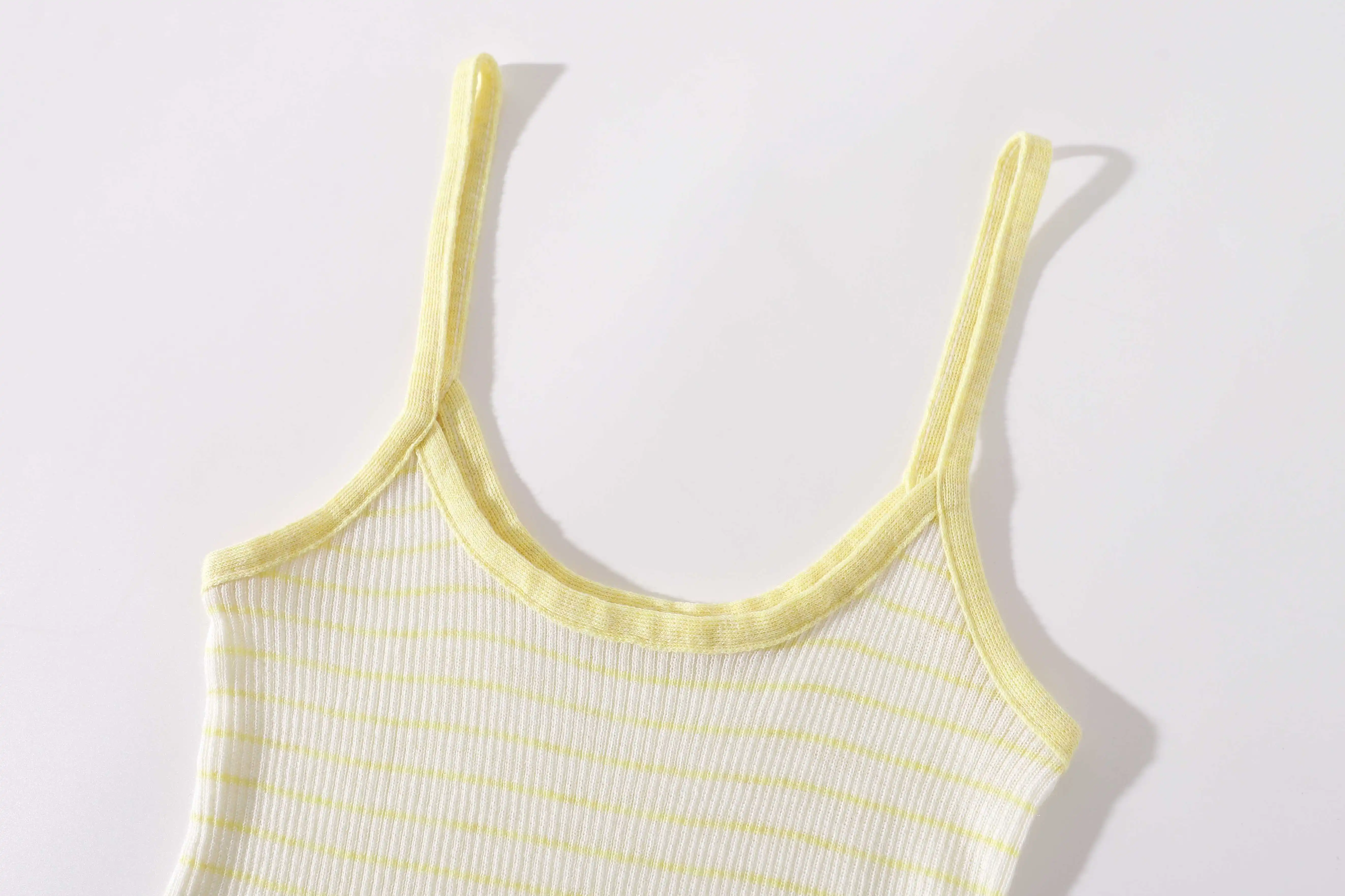 Áo chống nắng mỏng màu vàng phong cách Hàn Quốc dành cho nữ, bộ đồ hai mảnh mặc trong mùa hè có áo yếm sọc