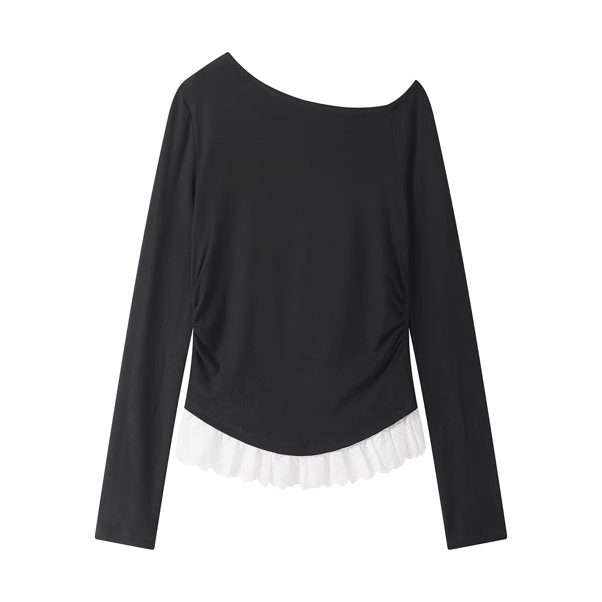 Áo dệt kim lệch vai phối ren độc đáo và đặc biệt dành cho nữ, áo thun dài tay mùa xuân và mùa thu.