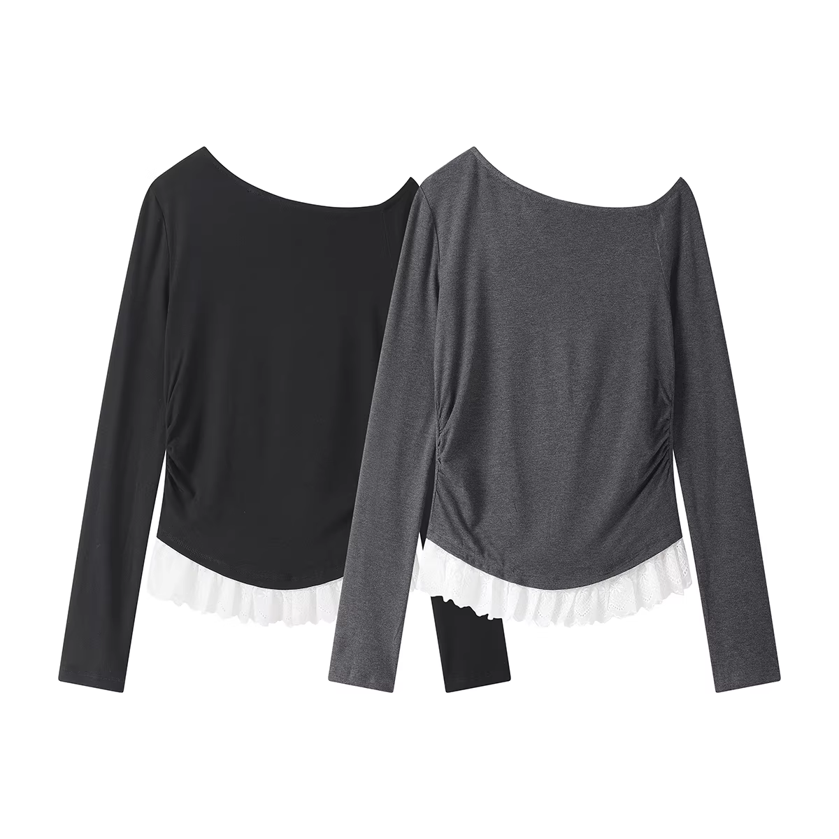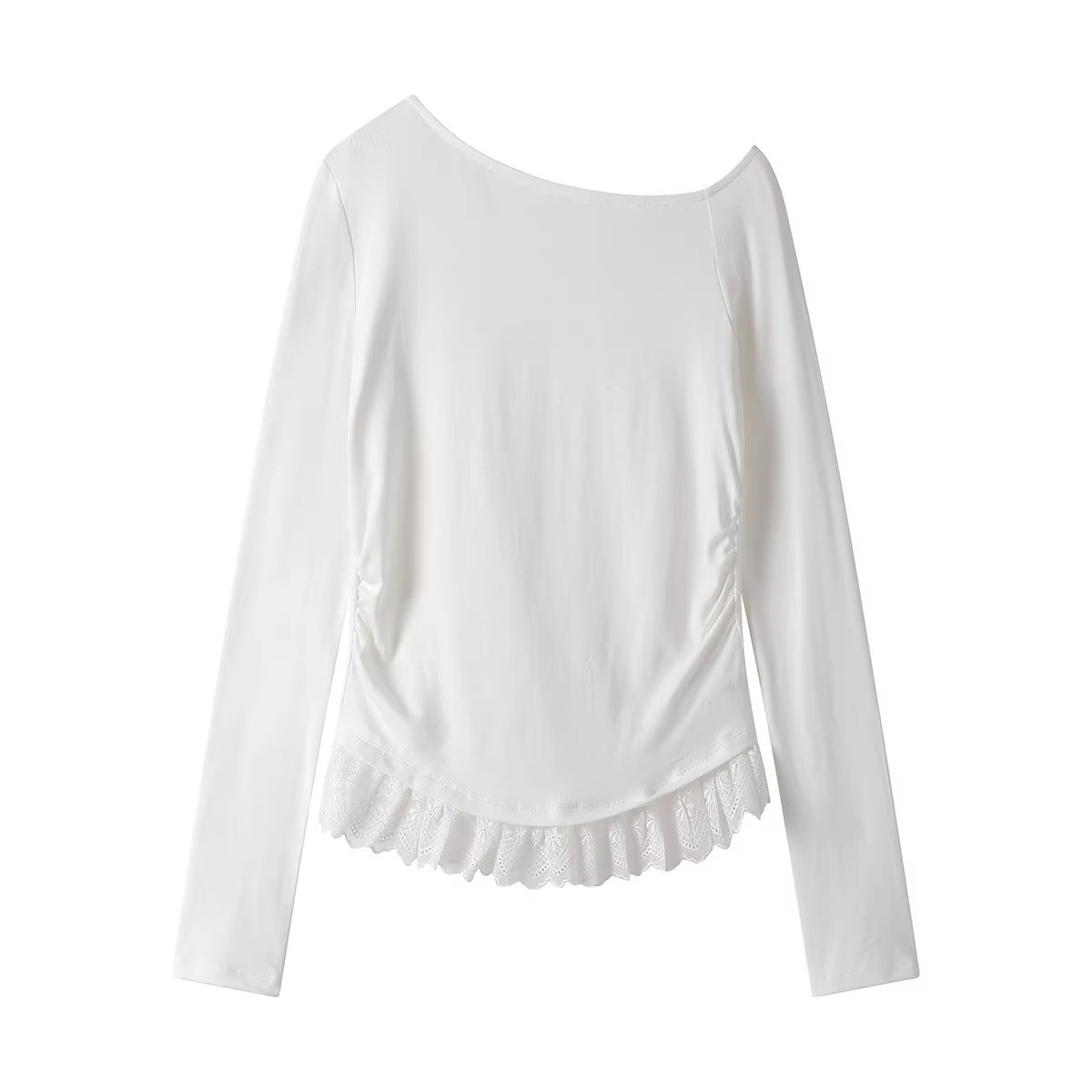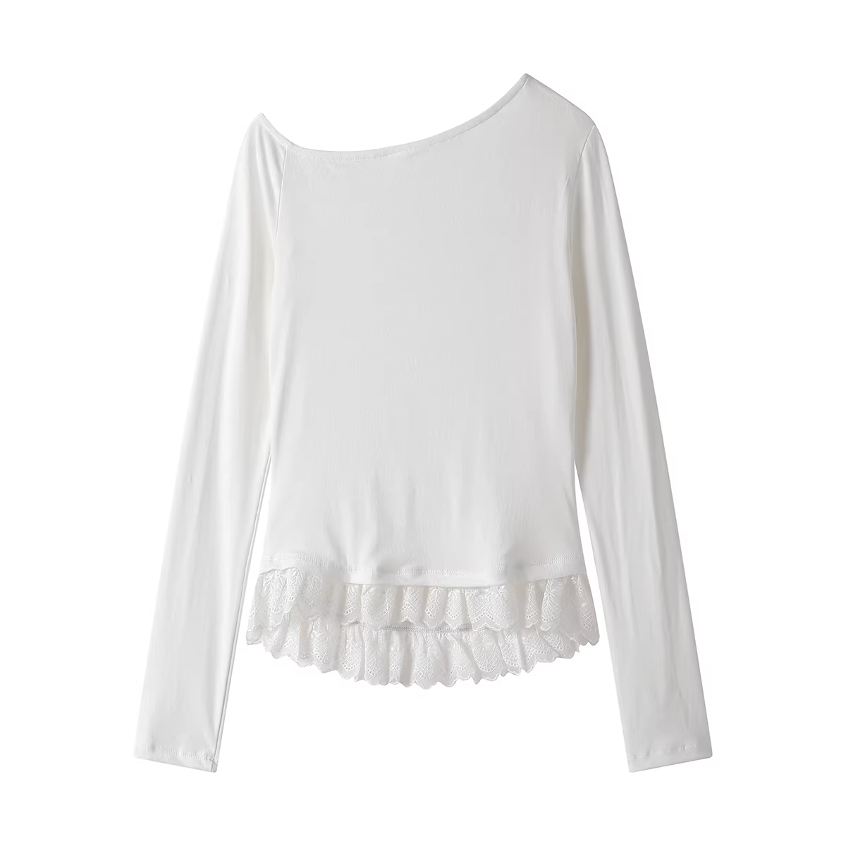 - Áo dệt kim lệch vai phối ren độc đáo và đặc biệt dành cho nữ, áo thun dài tay mùa xuân và mùa thu.