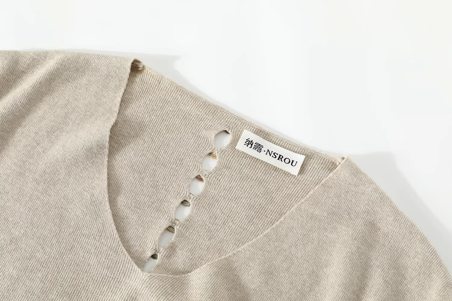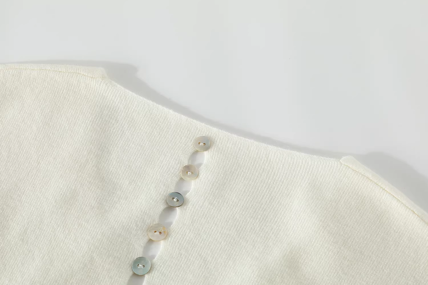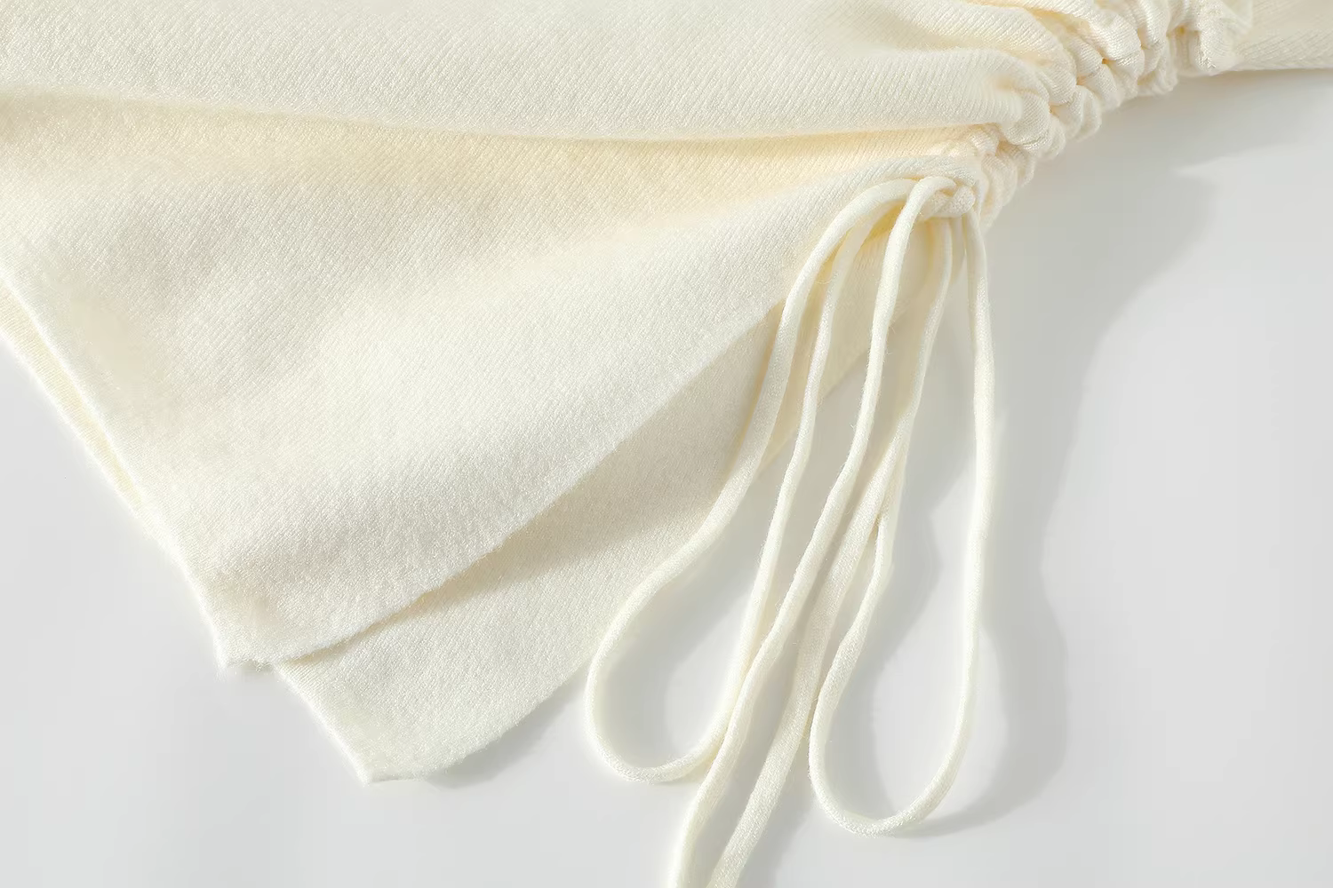 - Áo dệt kim ngắn tay kiểu Pháp giản dị dành cho nữ, thiết kế xuân thu, ôm dáng, áo có dây rút xếp ly