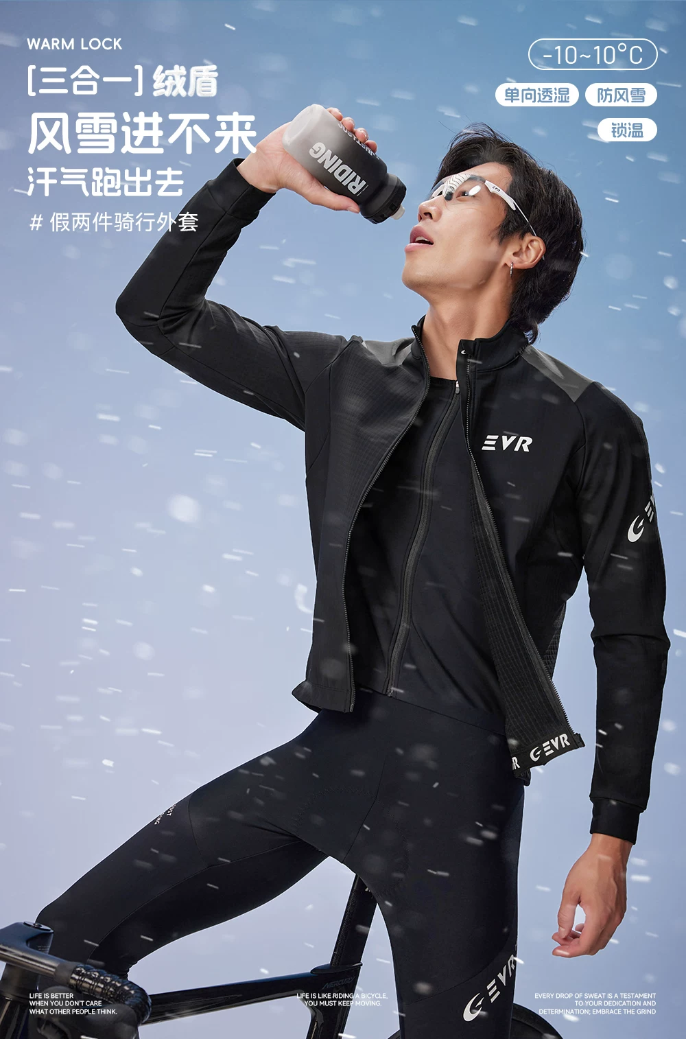 Áo đi xe đạp mùa đông EVR dành cho nam, ấm áp và lót lông cừu, áo đi xe đạp giả hai mảnh, thoáng khí và chống thấm nước