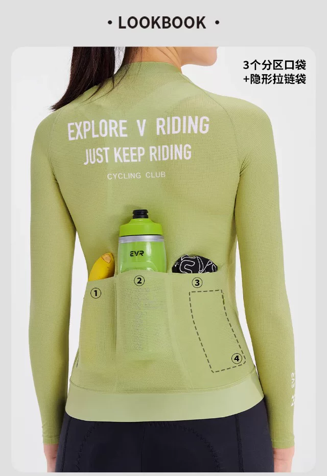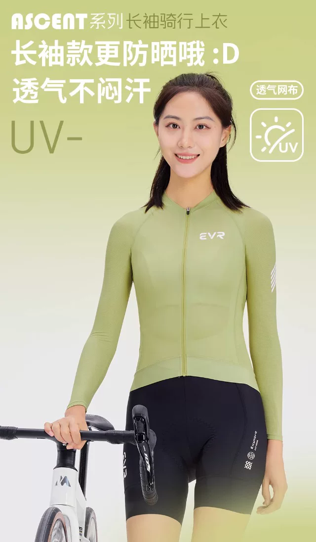 Áo đi xe đạp mùa hè EVR dành cho nữ, áo dài tay, ôm sát, thoải mái, đa chức năng, đi xe đạp đường trường, nhanh khô và thoáng khí
