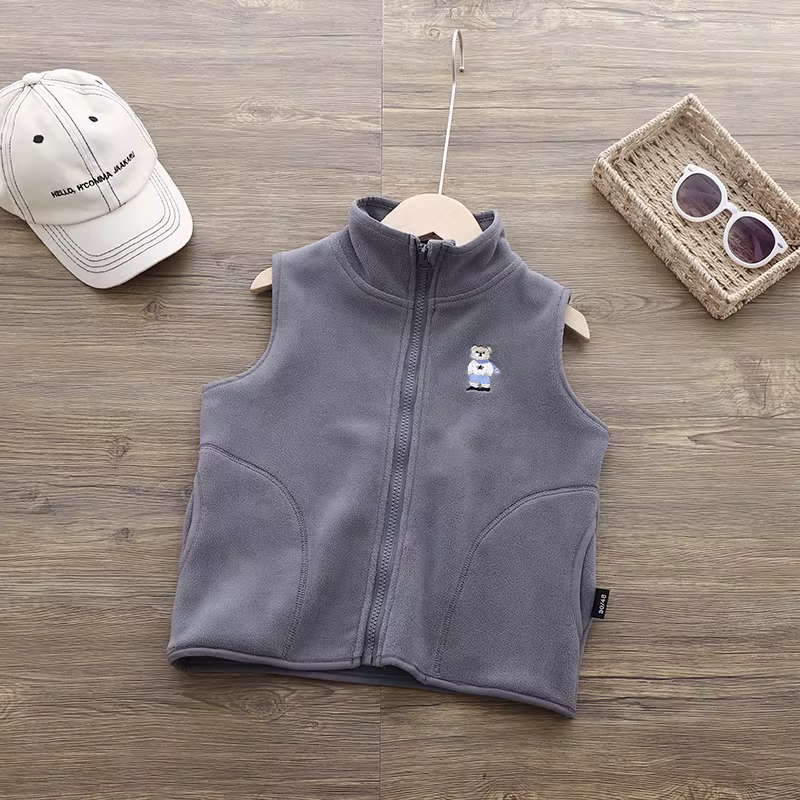 - Áo gile nỉ cổ đứng trẻ em xuân đông 2025 họa tiết hoạt hình, áo khoác có khóa kéo thời trang cho bé trai, không tay, kiểu dáng hiện đại