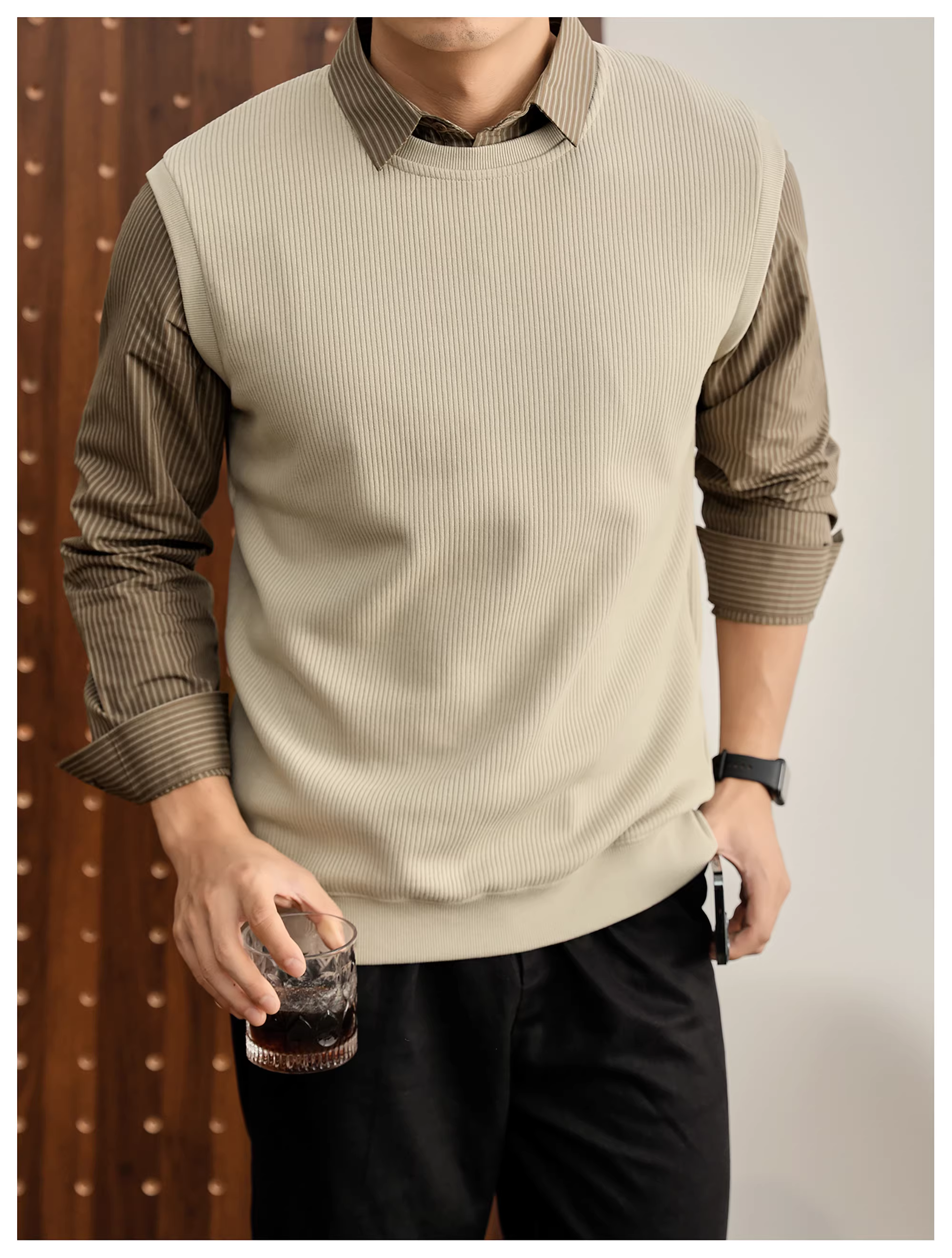 Áo hai mảnh giả vải có họa tiết phong cách Hàn Quốc thời trang LUUD dành cho nam, áo sơ mi sọc có phối vải dệt kim, áo vest kiểu tiền cổ điển.