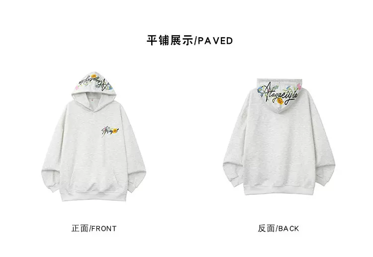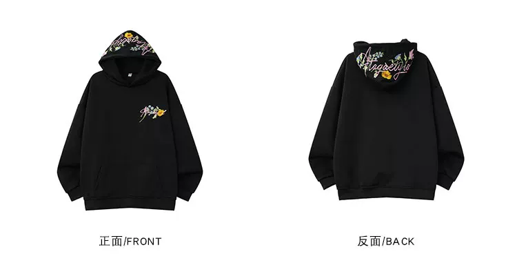 Áo hoodie thêu hoa nặng chất liệu dày dặn dành cho nam, áo đôi thời thượng mùa thu, áo khoác tay dài kiểu Mỹ.