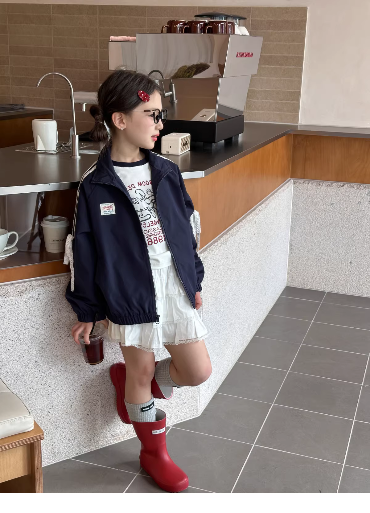 - Áo khoác bé gái phối ren nơ xinh xắn, kiểu mới thu 2025, size trung và lớn, áo kiểu dáng nhỏ nhắn, phong cách thường ngày