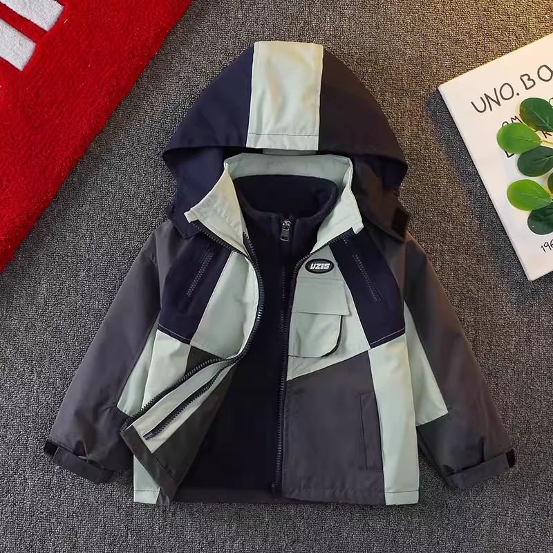 - Áo khoác bé trai xuân thu ba trong một, có thể tháo rời, chống gió, chống thấm nước, mẫu mới 2025, thời trang, quần áo ngoài trời trẻ em