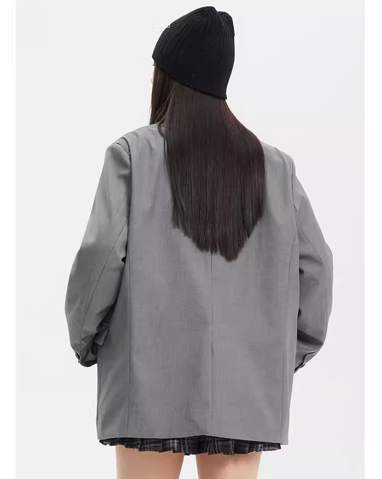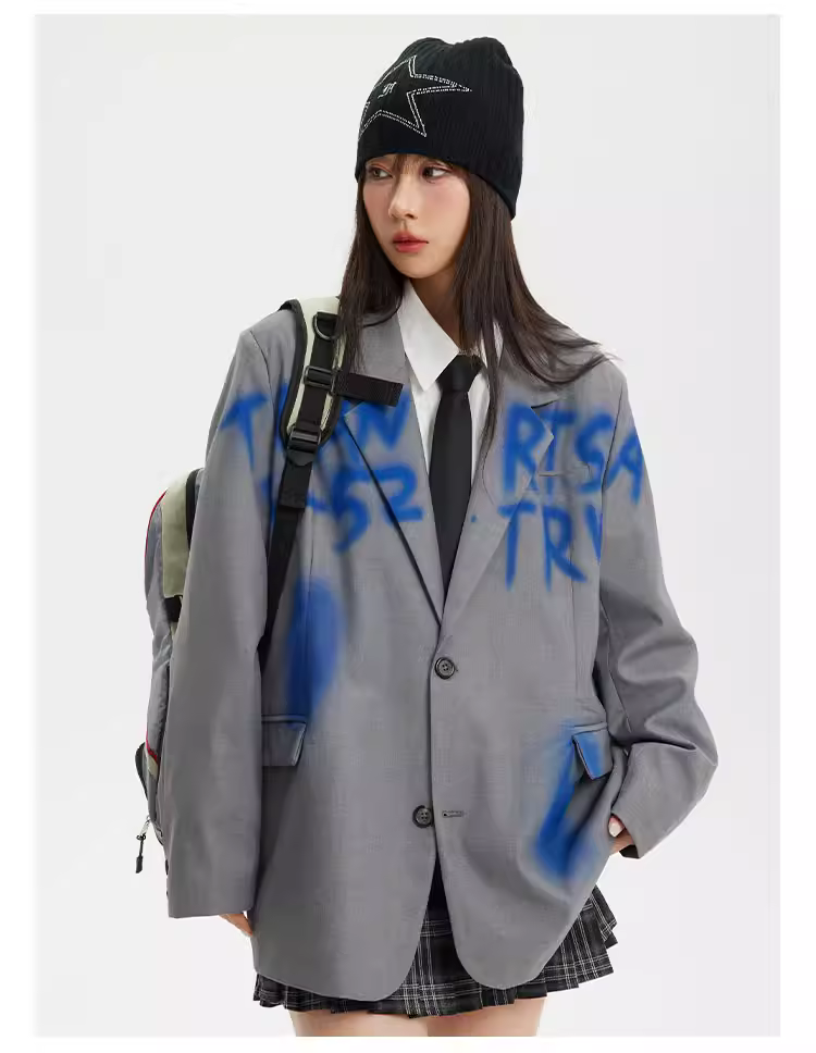 - Áo khoác blazer unisex phong cách retro Mỹ, họa tiết graffiti chữ cái, thiết kế đa năng, phong cách sinh viên.