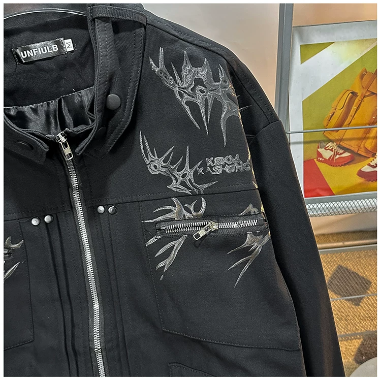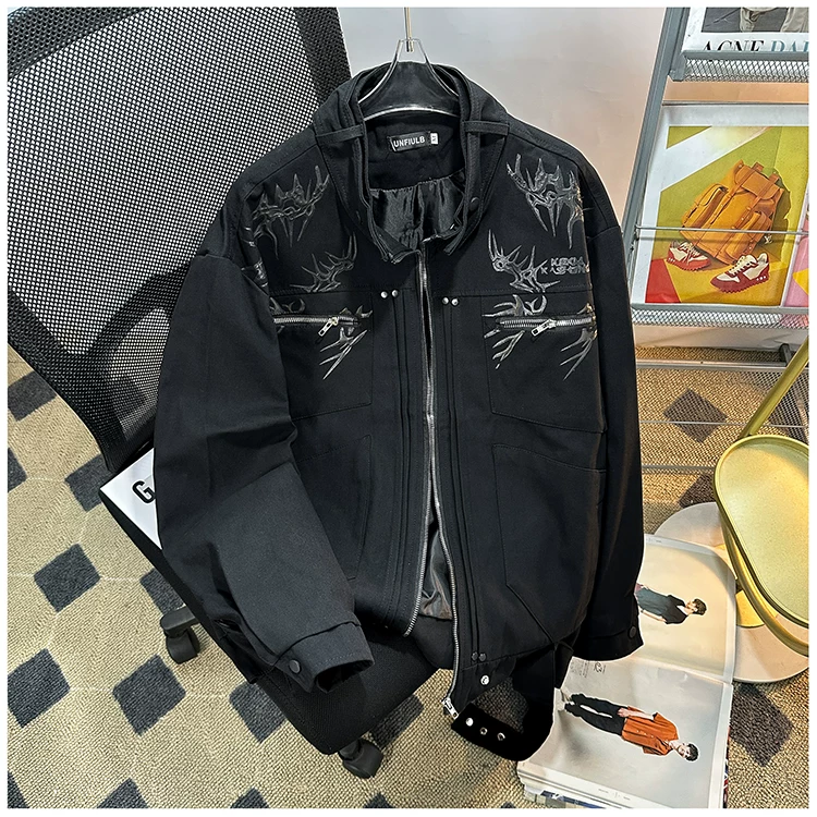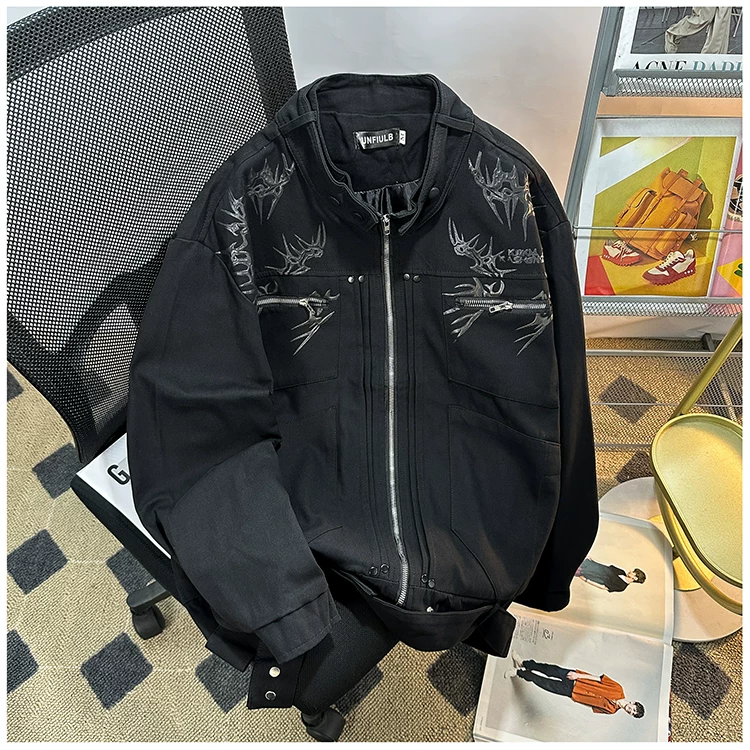 - Áo khoác bomber thêu kiểu Mỹ dành cho nam, áo khoác ngoài thương hiệu thời trang xuân thu, kiểu dáng rộng rãi, cổ đứng, phong cách công sở.