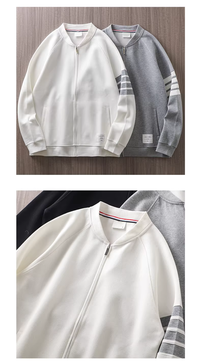 - Áo khoác bốn sọc kiểu Nhật dành cho nam, áo khoác bóng chày cổ đứng dáng rộng, chất liệu dày dặn, không có mũ trùm đầu, áo cardigan kiểu dáng thời trang