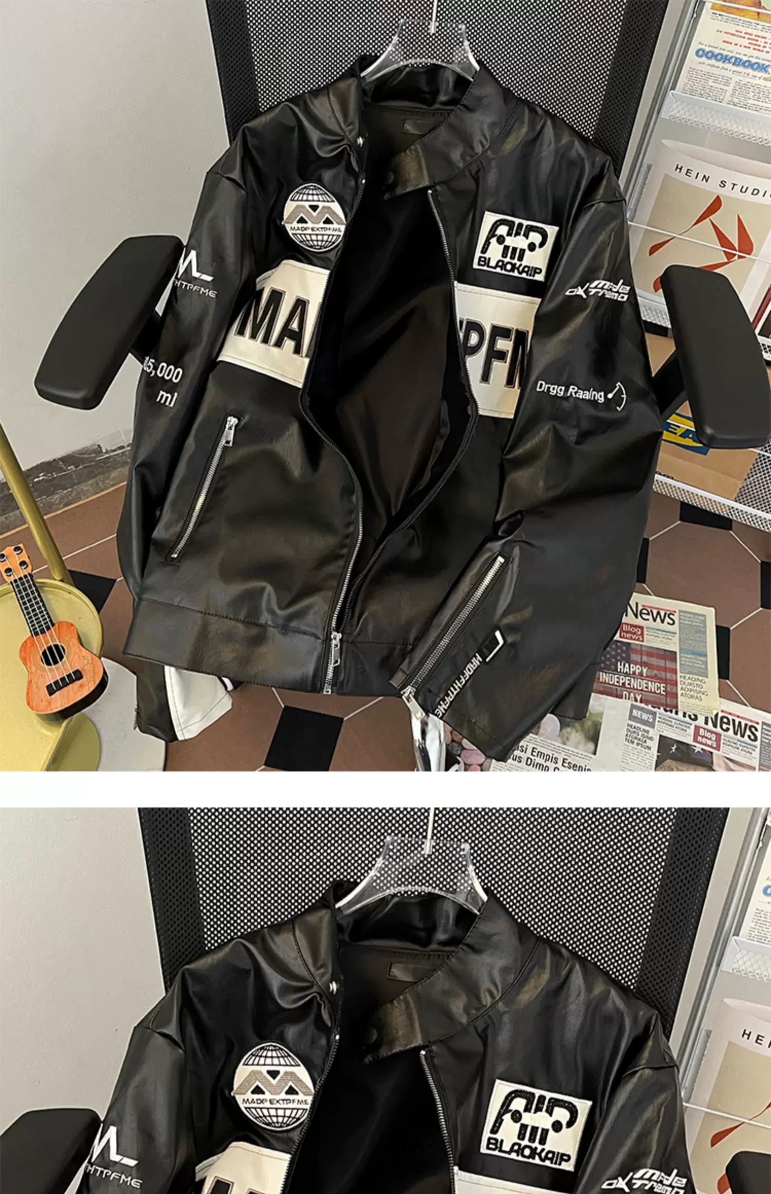 - Áo khoác bóng chày da PU thêu kiểu Mỹ, dáng rộng cho nam, mùa xuân thu, thương hiệu thời thượng, áo khoác cặp đôi cá tính.