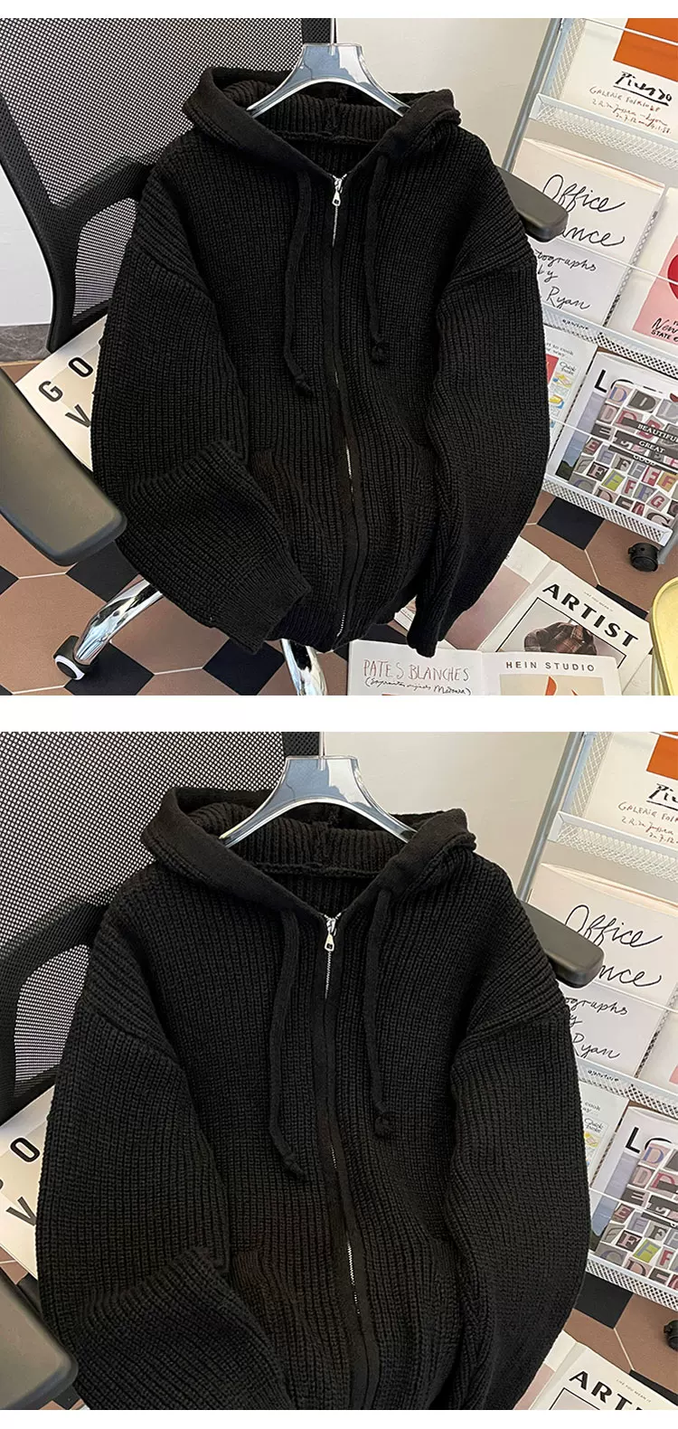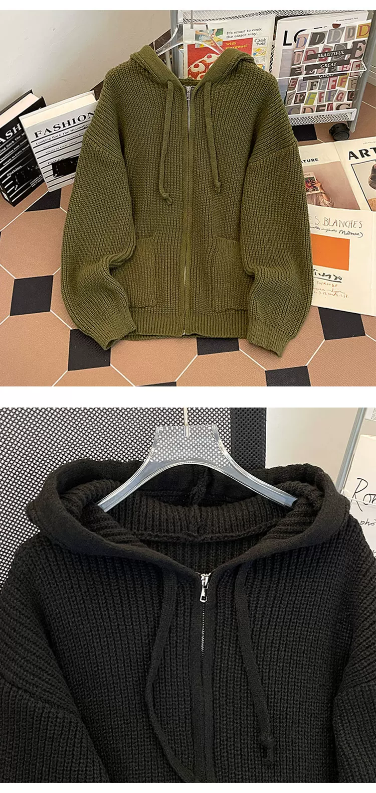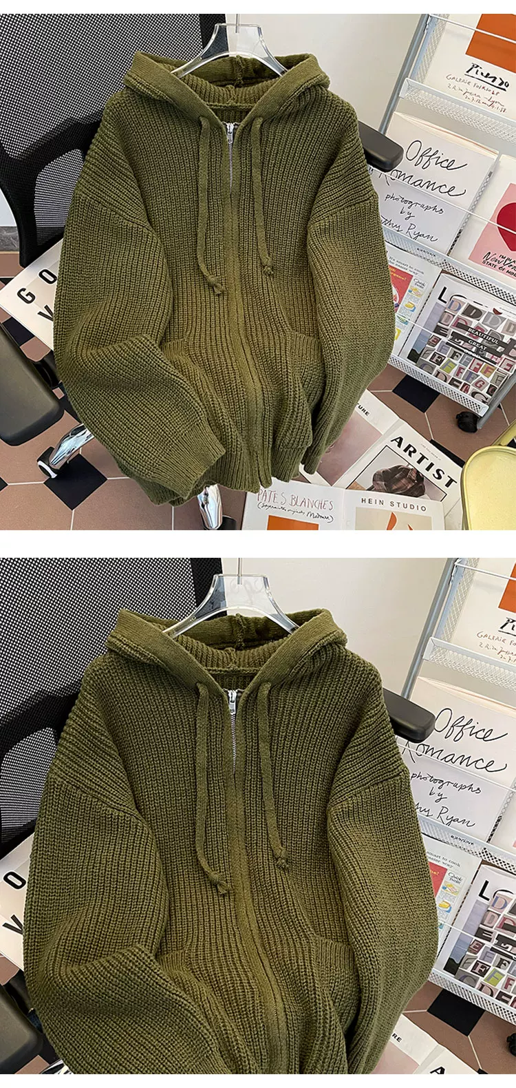 Áo khoác cardigan có mũ dành cho nam, kiểu mới thu đông 2024, phong cách Mỹ rộng rãi, thời thượng, kiểu dáng thoải mái, áo đôi.