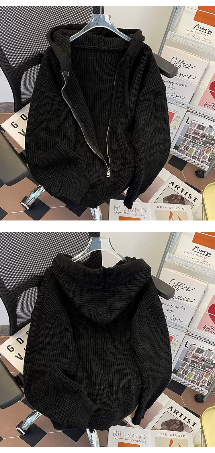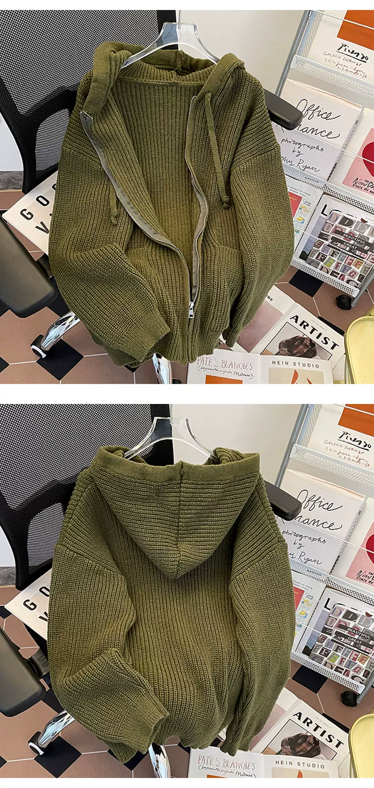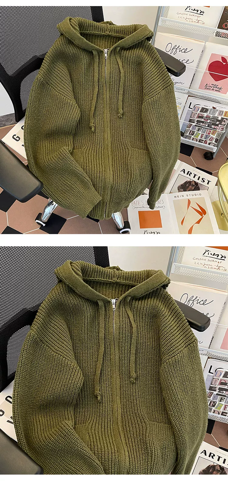 - Áo khoác cardigan có mũ dành cho nam, kiểu mới thu đông 2024, phong cách Mỹ rộng rãi, thời thượng, kiểu dáng thoải mái, áo đôi.