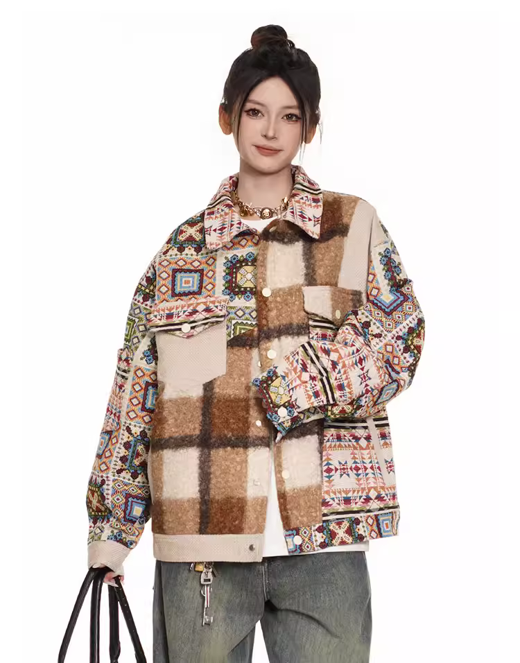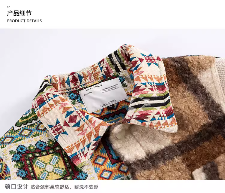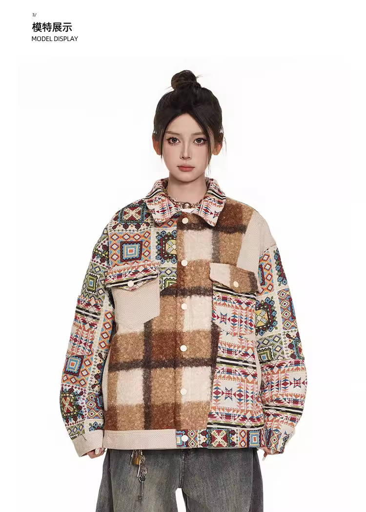 Áo khoác chắp vá thêu phong cách dân tộc cổ điển Mỹ K787 dành cho nam và nữ, thiết kế độc đáo Áo khoác cặp đôi đảo Feynman