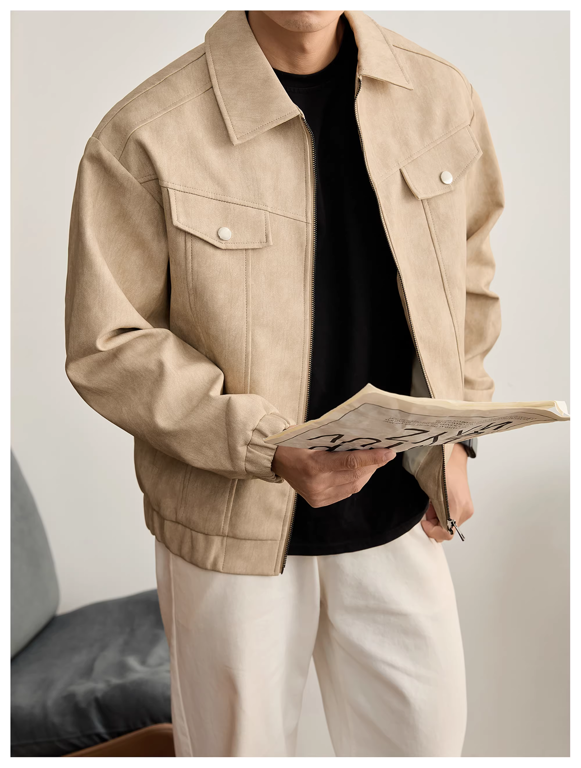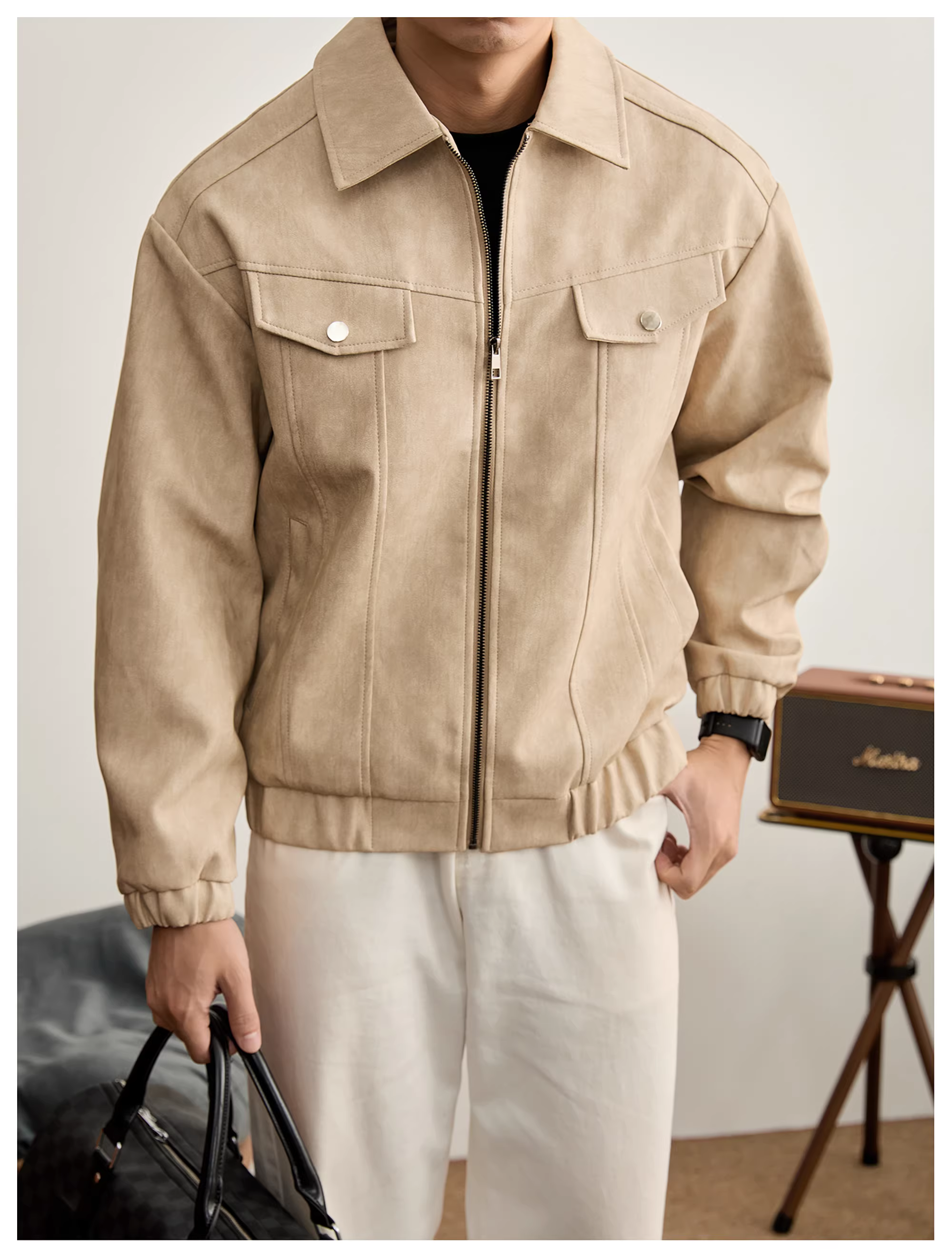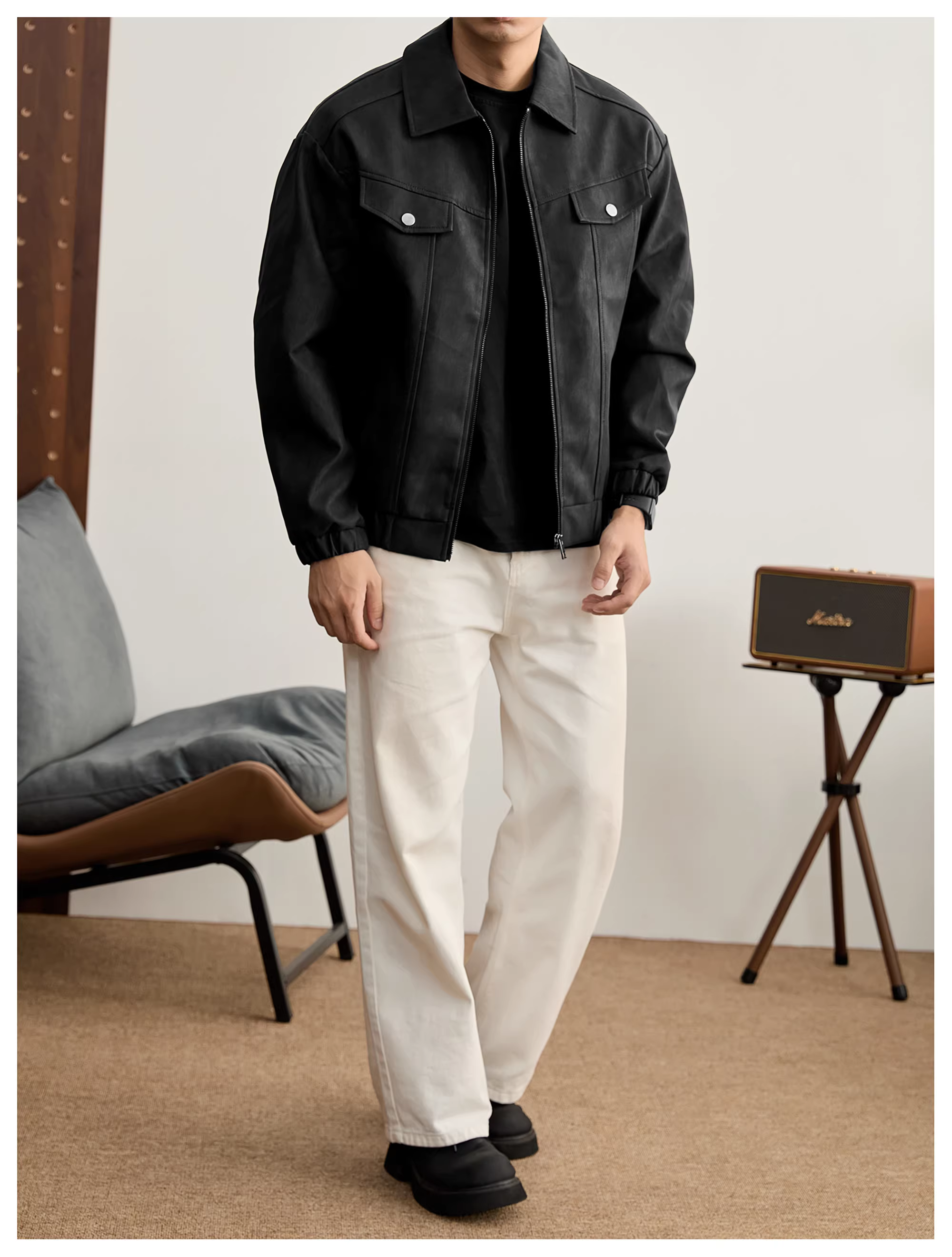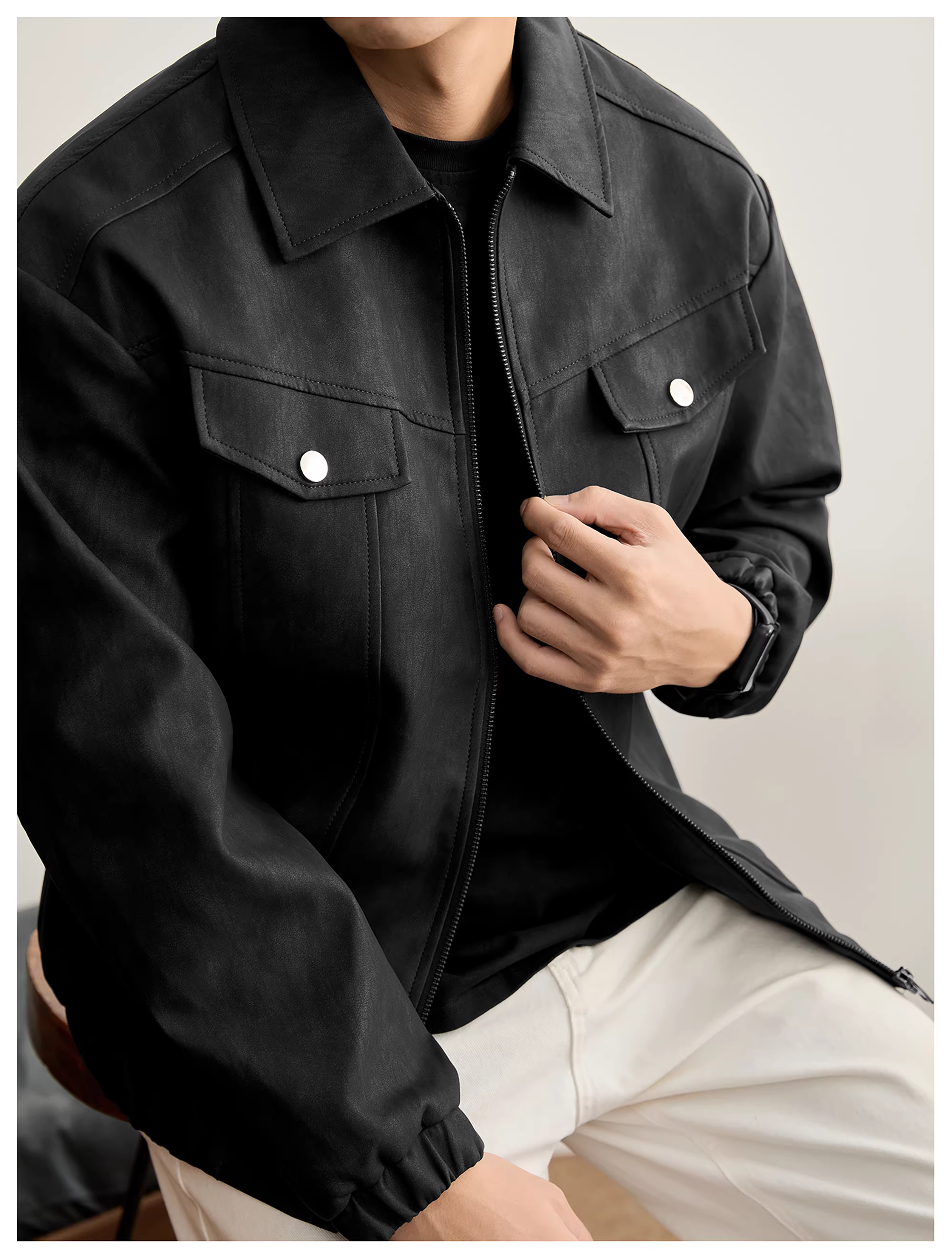 Áo khoác chống gió bằng da PU phong cách đường phố LUUD dành cho nam mùa đông Thiết kế có nắp lật có túi giả Áo khoác thường ngày hợp thời trang