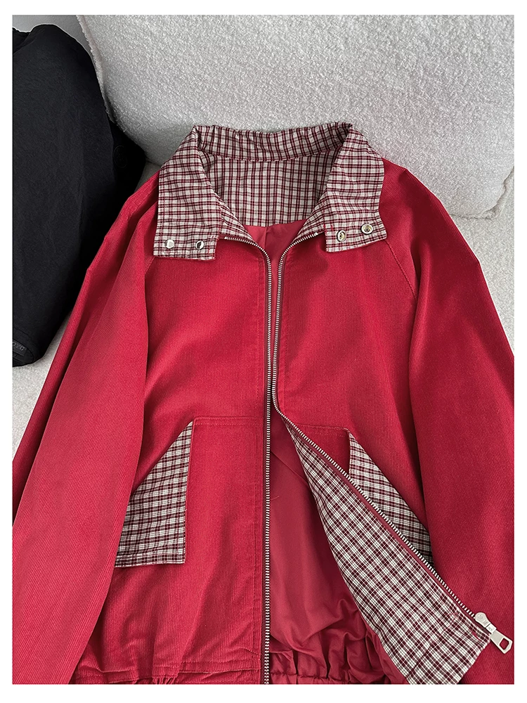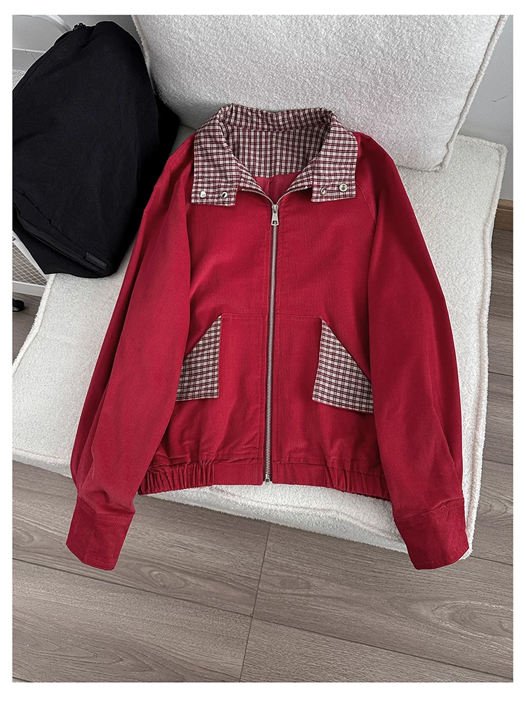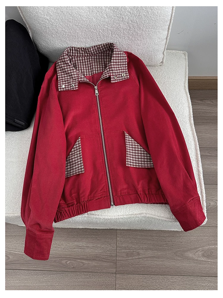 - Áo khoác cổ điển kiểu Mỹ dành cho nam và nữ, áo khoác kẻ caro phối vải mùa xuân thu, áo khoác công sở dáng rộng thời trang, cá tính.