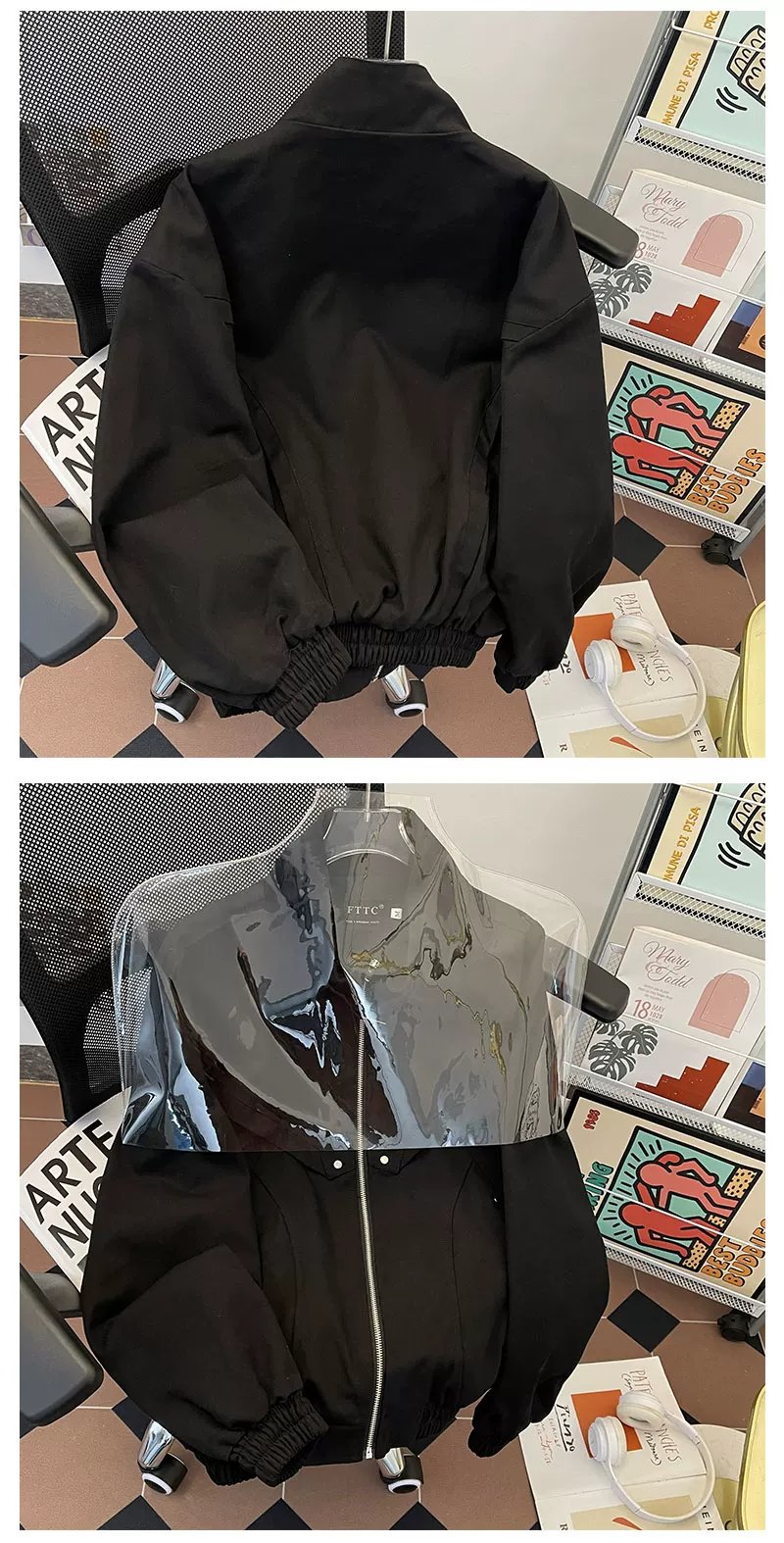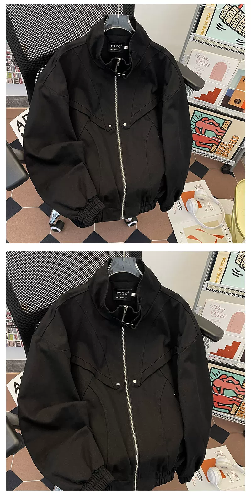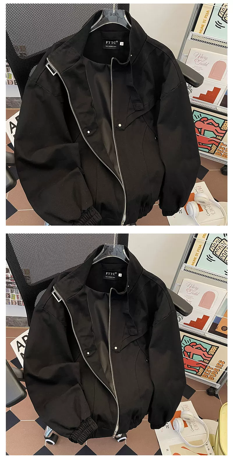 - Áo khoác cổ đứng bằng vải canvas đã qua xử lý, thiết kế ngắn, phong cách phi công Mỹ thời thượng mùa xuân thu dành cho nam.